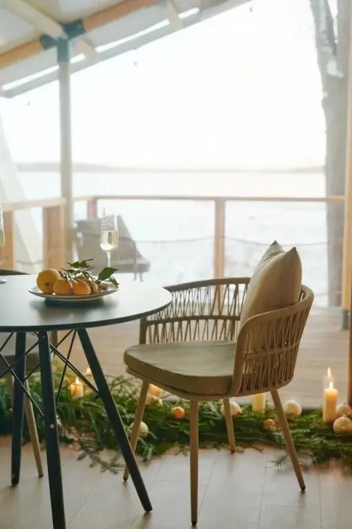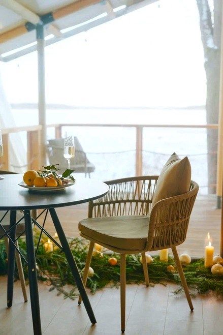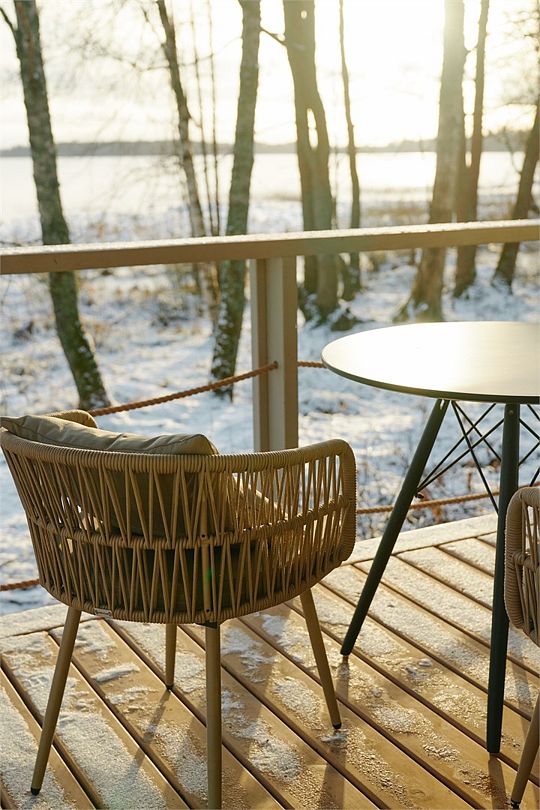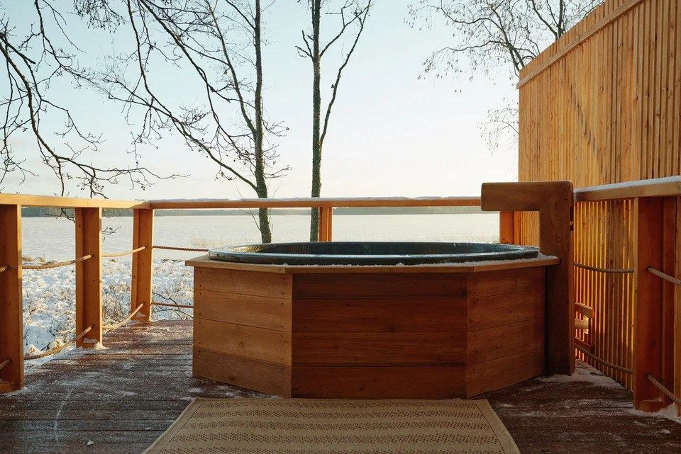 Насладитесь завтраком на просторной террасе с видом на озеро, а вечером согрейтесь у потрескивающей печки. На террасе расположена купель.