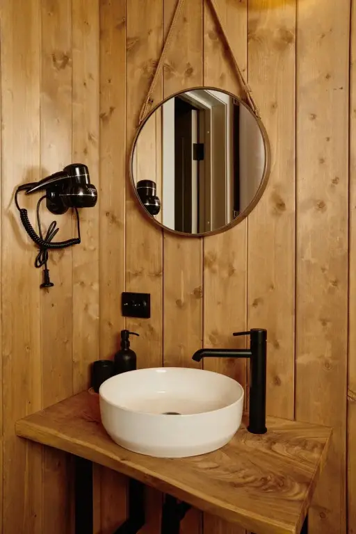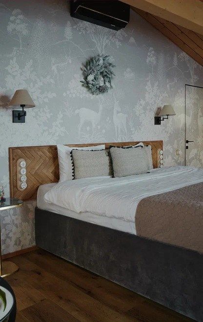 Уютный деревянный лодж на берегу озера приглашает вас окунуться в атмосферу спокойствия и умиротворения. Интерьер выполнен в стиле сафари.