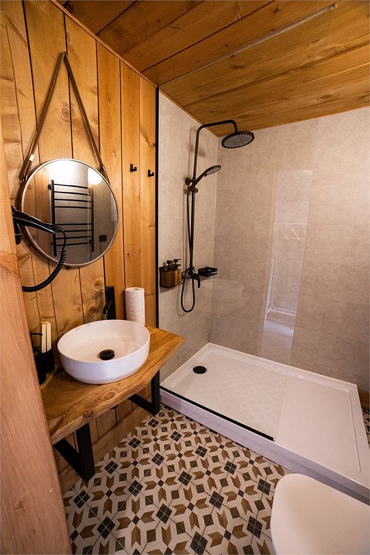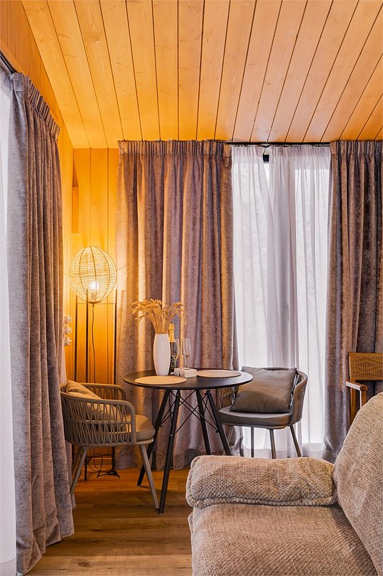 Откройте для себя мир релакса и комфорта в нашем уютном лодже у озера с купелью! Идеальный вариант для двоих гостей, желающих насладиться уединением и спокойствием. Площадь номера составляет 36 м², что позволит вам чувствовать себя свободно и комфортно. В вашем распоряжении будут все необходимые удобства. Вы сможете расслабиться в стильном интерьере, наслаждаясь видами на окружающую природу. Каждое утро начинается с пробуждения под пение птиц и свежего воздуха, что делает ваш отдых поистине незабываемым. В лодже возможно проживание с собаками до 30 см в холке и не больше 7 кг. Проживание с питомцем дополнительно оплачивается.Услуги и удобства