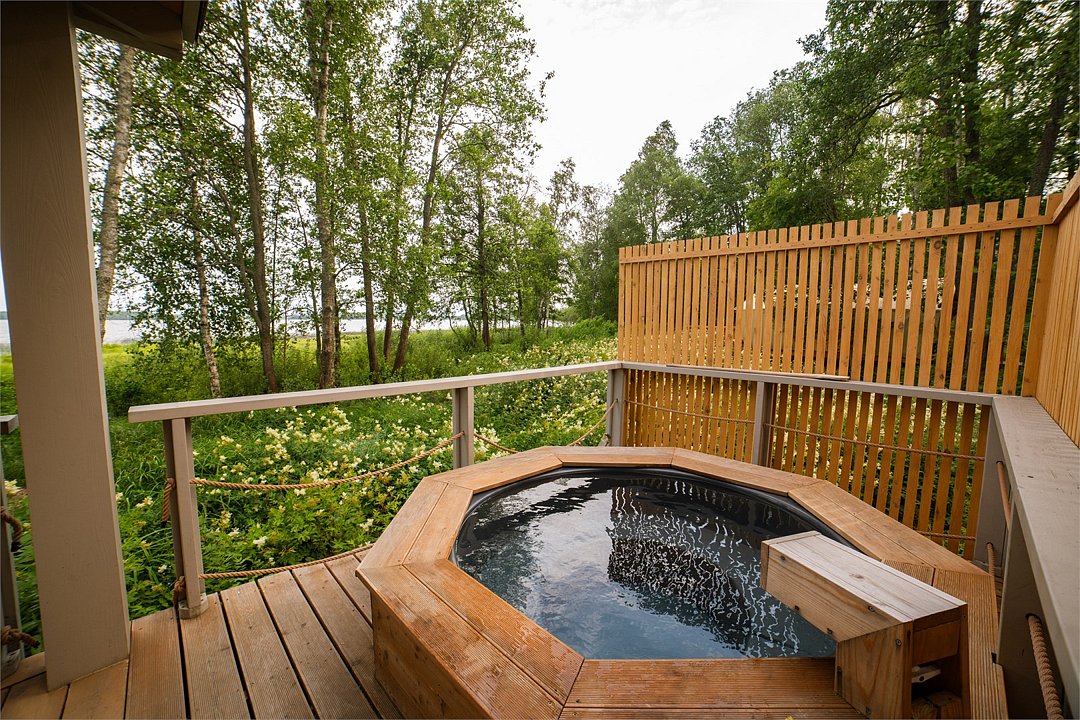 Добро пожаловать в нашу виллу у озера, где каждый момент наполнен атмосферой уюта и спокойствия. Этот уникальный уголок природы создан для тех, кто хочет сбежать от повседневной суеты и насладиться гармонией с окружающим миром. Идеальное место для отдыха Наш дом площадью 36 м² расположен в живописном месте, прямо у воды, что позволяет вам наслаждаться великолепными видами и свежим воздухом. Откройте окно и впустите в свою жизнь звуки природы: пение птиц, шепот ветра и легкие волны озера. Здесь вы сможете забыть о времени и просто наслаждаться моментом. Уникальная купель Одной из главных изюминок нашей виллы является купель, где вы сможете расслабиться и восстановить силы. Представьте себе, как вы погружаетесь в теплую воду под звездами, наслаждаясь романтической атмосферой и уединением. Это идеальное место для вечерних бесед и создания незабываемых воспоминаний. Комфорт и стиль Интерьер нашего домика сочетает в себе современный стиль и элементы кантри, создавая атмосферу домашнего уюта. Каждая деталь продумана для вашего комфорта: от удобной мебели до уютного освещения. Здесь вы сможете провести время вдвоем, наслаждаясь спокойствием и красотой природы. В лодже возможно проживание с собаками до 30 см в холке и не больше 7 кг. Проживание с питомцем дополнительно оплачивается.Услуги и удобства