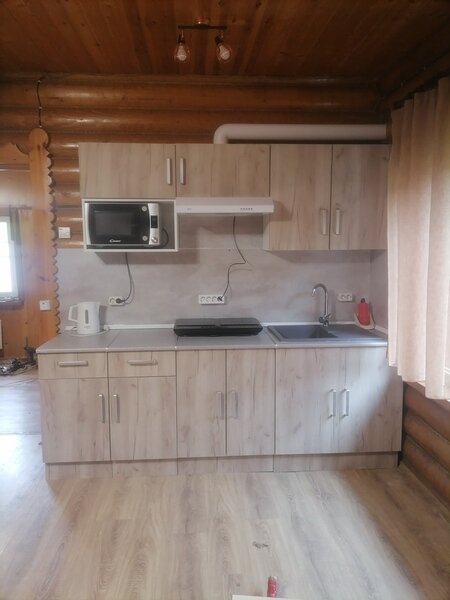 В коттеджах есть вся необходимая мебель, посуда, телевизор, холодильник, микроволновая печь, детские кроватки. При необходимости, за дополнительную плату, можно разместить большее количество гостей.
