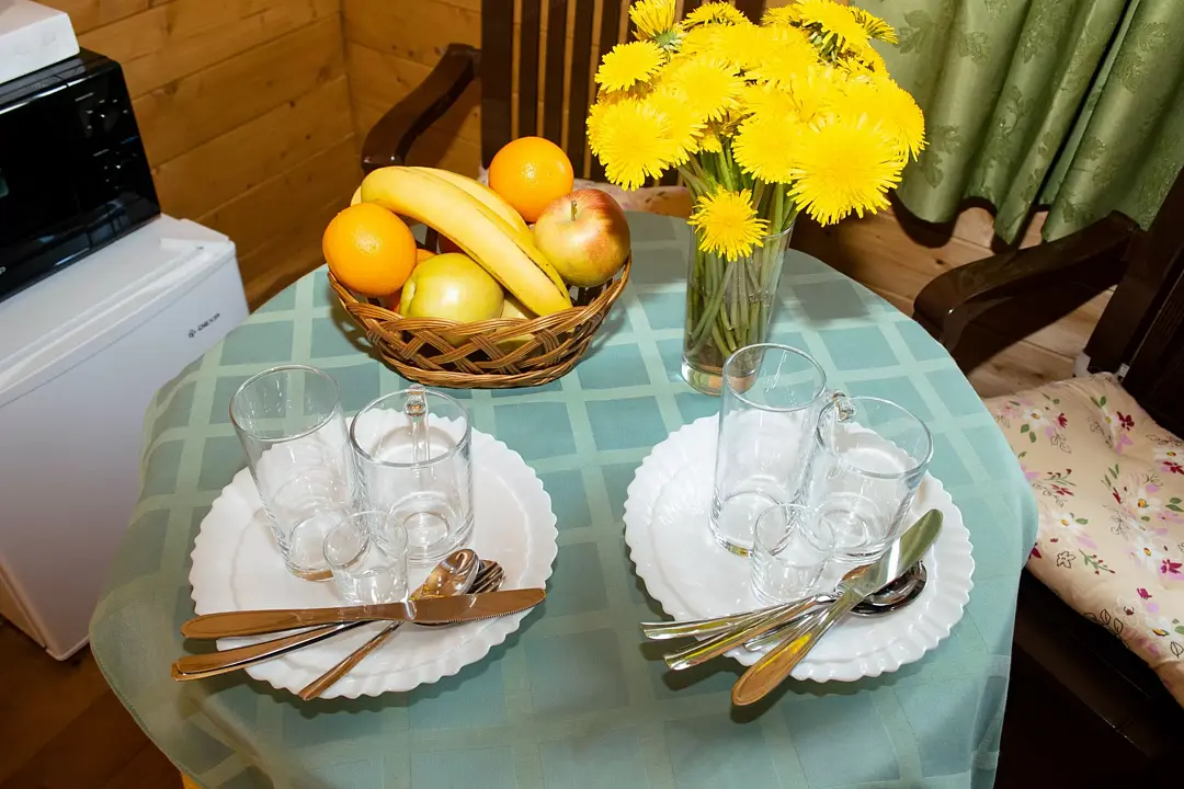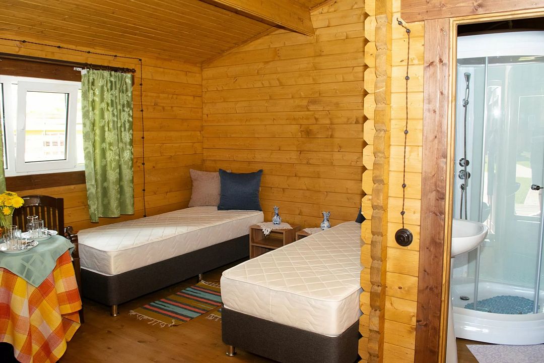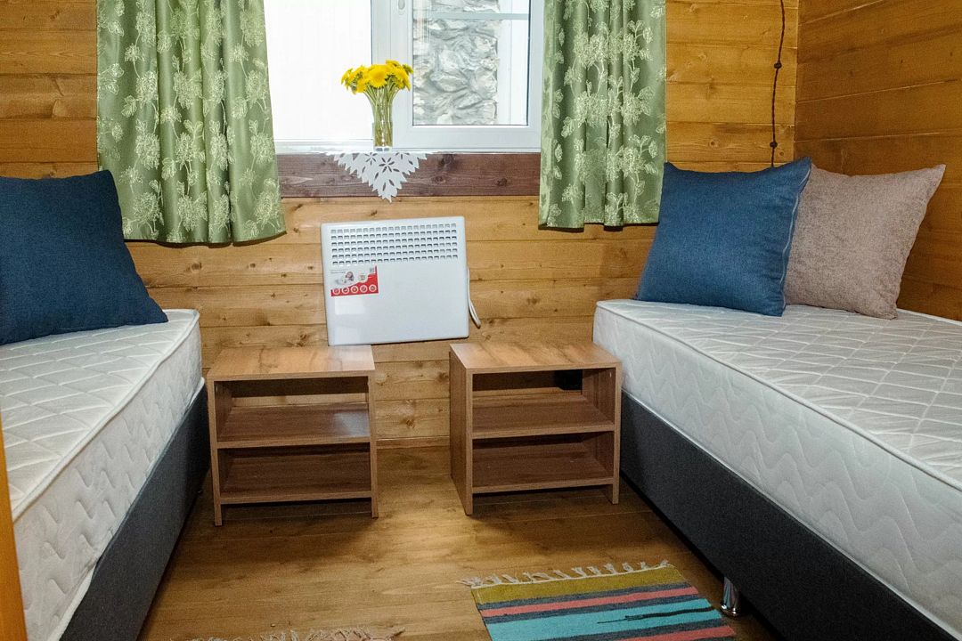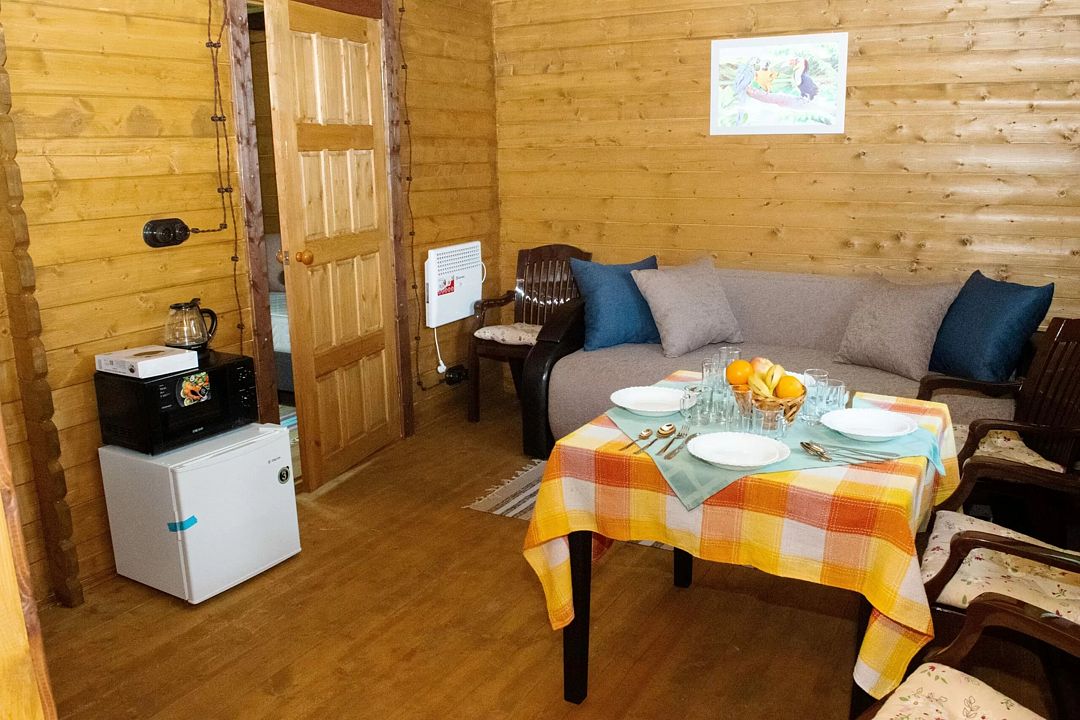 Вас ждёт проживание в одном из уютных коттеджей, среди которых есть одноэтажные на двоих гостей, большие на 4-6 гостей и даже коттедж с баней, способный вместить до 18 человек! В каждом из них Вы найдёте всё, что необходимо для комфортного проживания: душ, туалет, телевизор, холодильник, кухонная утварь, микроволновая печь, плиту и многое другое.