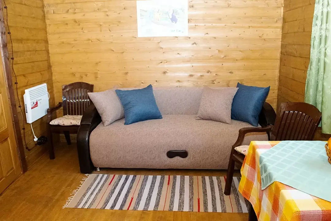 В коттедже «БОЛЬШОЙ» 5 и 6 место — раскладной диван в гостиной.