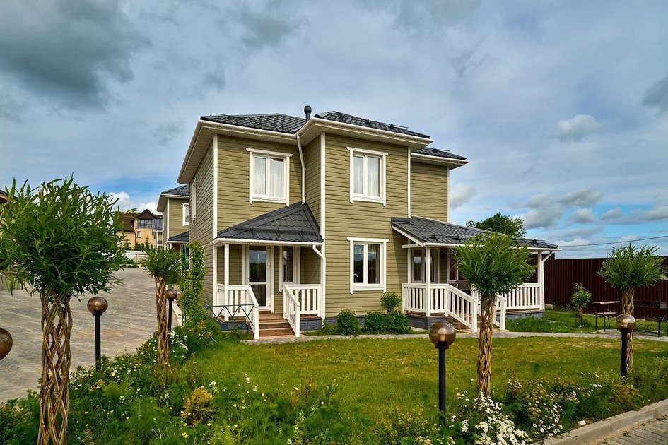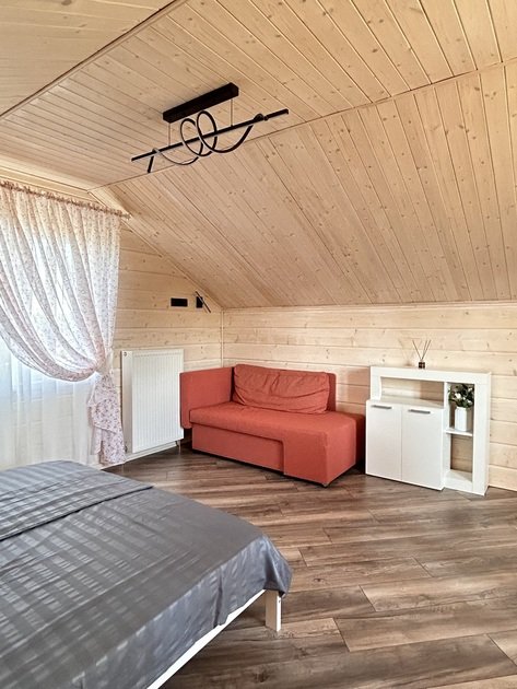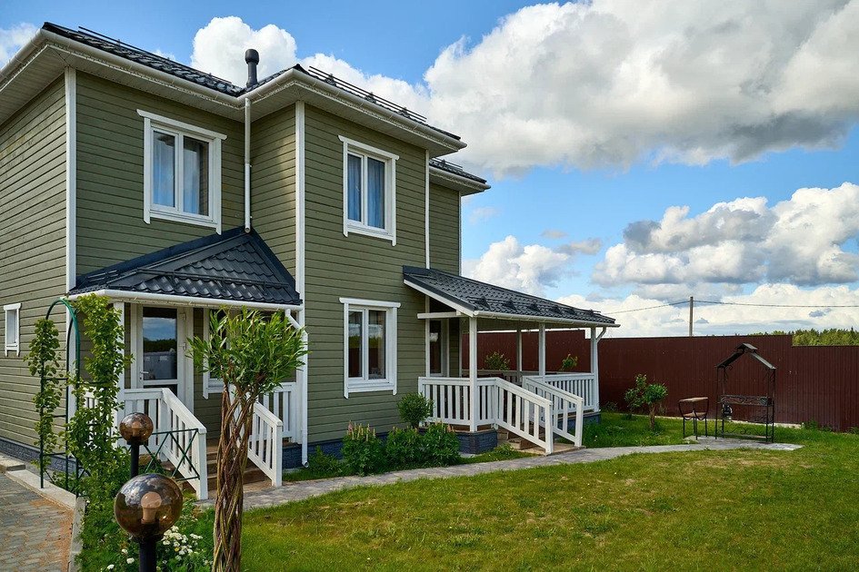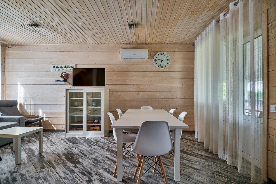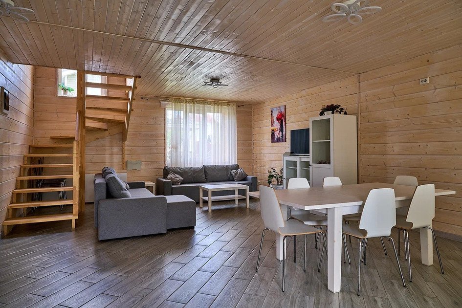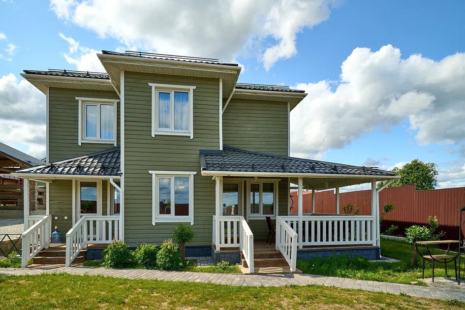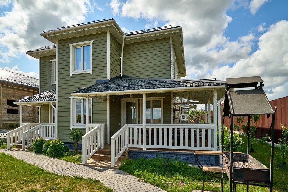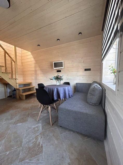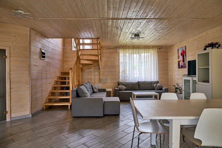 Комфортабельный новый двухэтажный коттедж с 4 спальнями и дровяной сауной — это просторное и уютное место, идеальное для отдыха в кругу семьи или друзей.