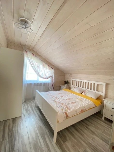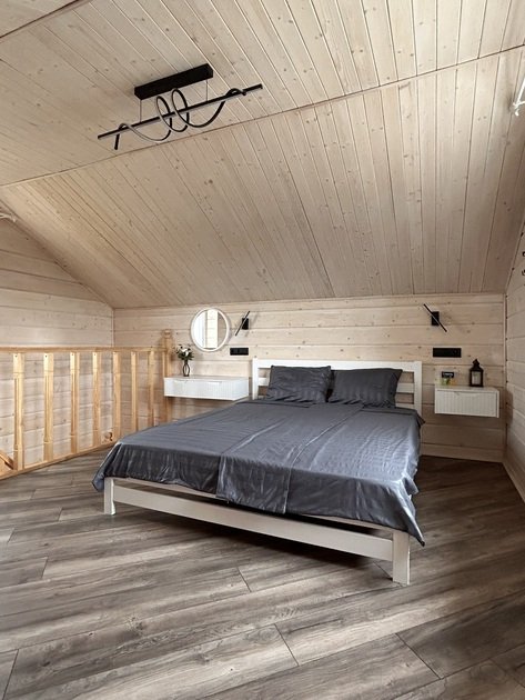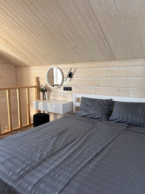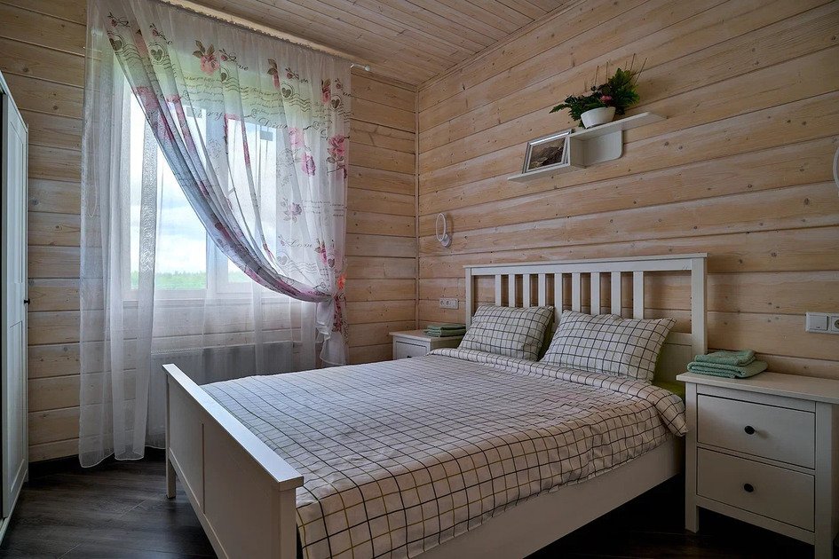 Второй этаж коттеджа – это место отдыха и сна. На нем располагаются 4 отдельные спальные комнаты с двуспальными кроватями и шкафами для хранения личных вещей. Для малышей имеется детская кроватка.