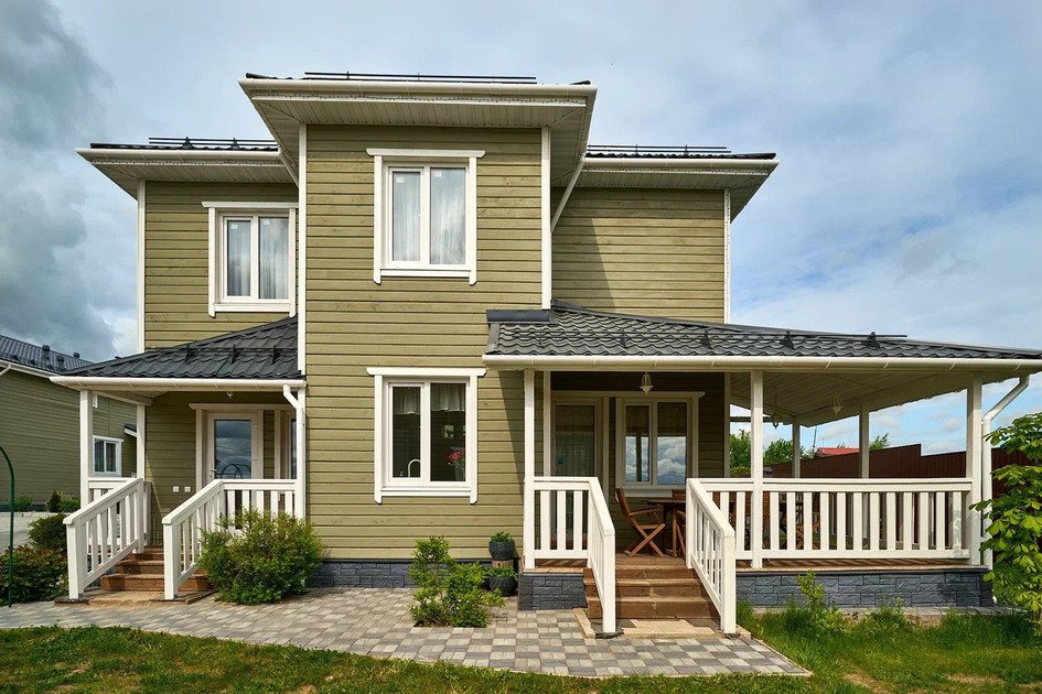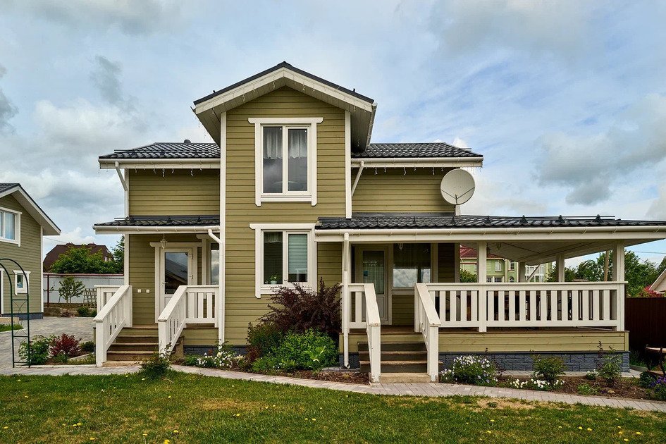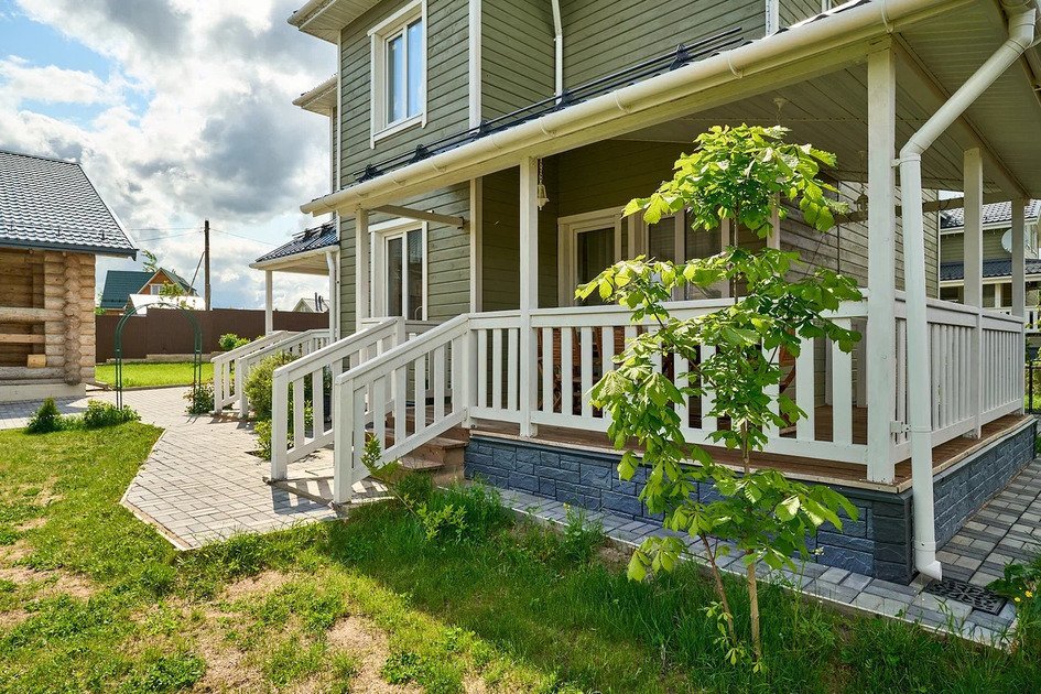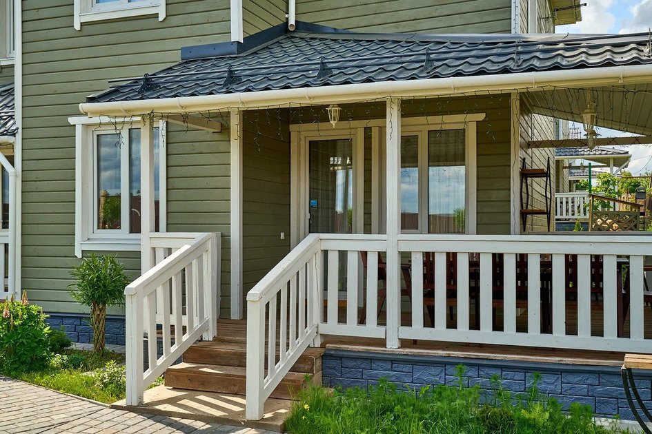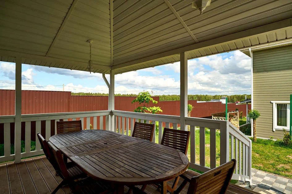 Неотъемлемой частью нашего коттеджа является просторная веранда. Здесь вы сможете насладиться утренним кофе, отдохнуть в креслах с любимой книгой или просто наслаждаться прекрасным видом на лужайку. Прекрасно подойдет для семейного обеда или встречи с друзьями.