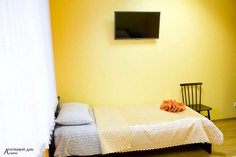 В одноместном номере к вашим услугам односпальная кровать, отопление, тумба и телевизор. Гости могут пользоваться общей ванной комнатой.