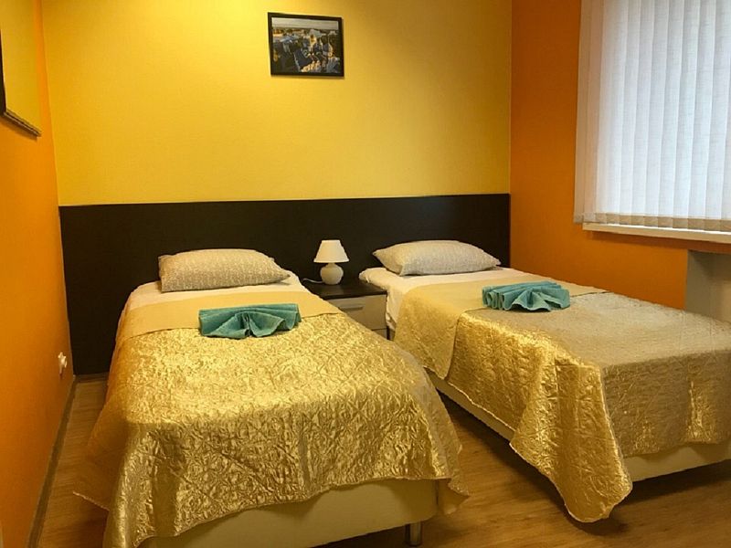 Двухместный номер с 2 отдельными кроватями рассчитан на 2-3 гостей. К вашим услугам диван, телевизор и общая ванная комната.