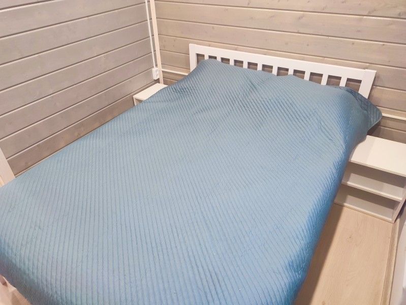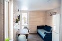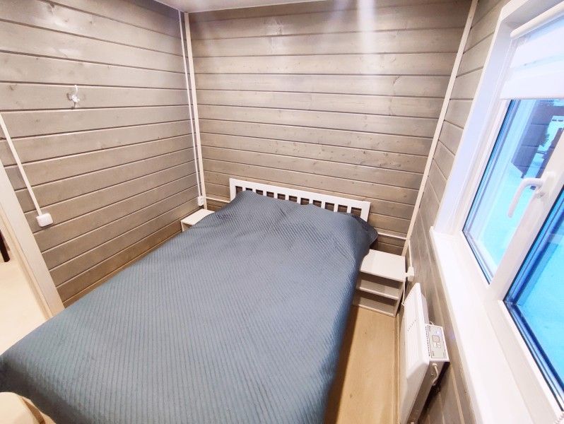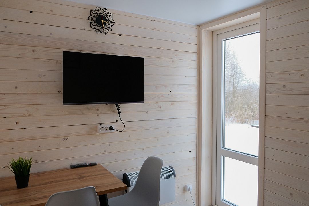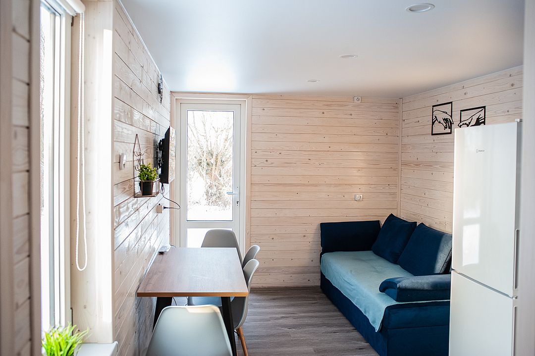 В семейном мини доме двуспальная кровать (сто восемьдесят на двести сантиметров), жалюзи, отопление, вешалка для вещей, раскладной диван для двух гостей (в кухонной зоне), бесплатный wi-fi, Smart TV и кондиционер.
