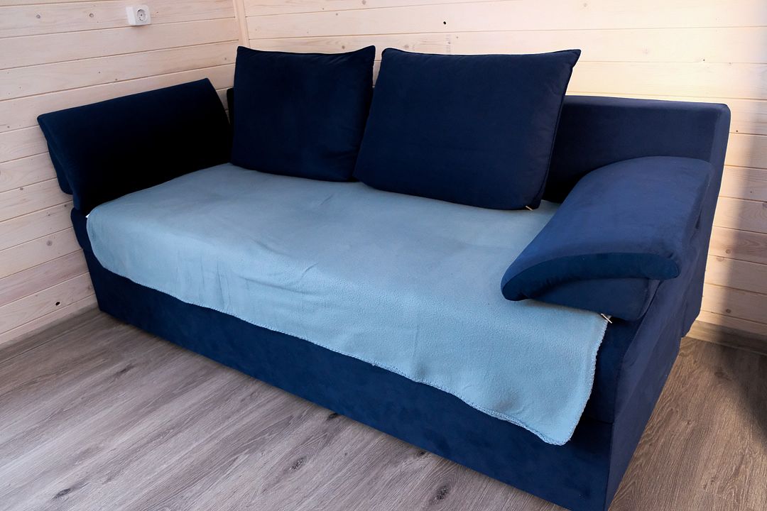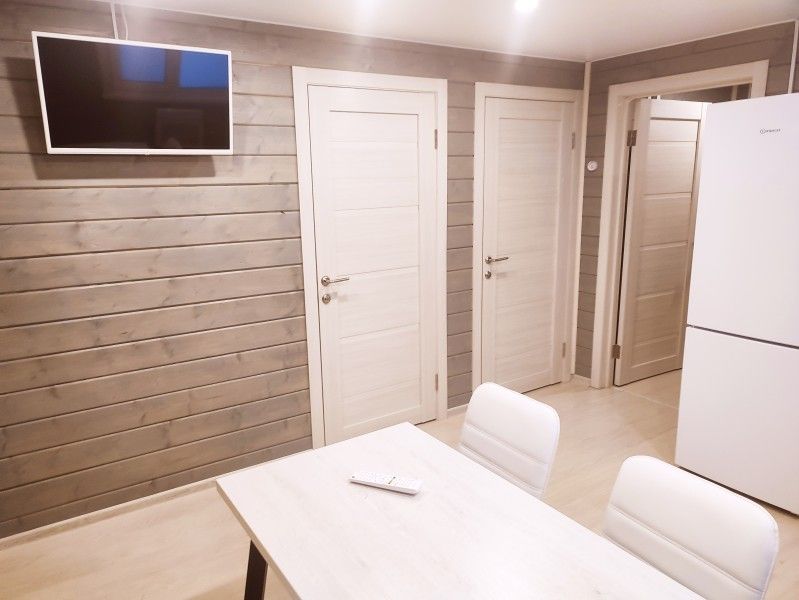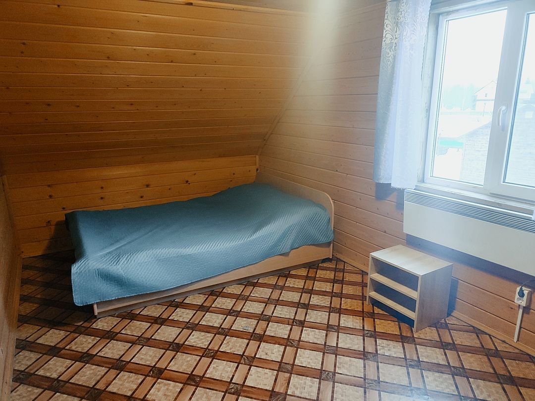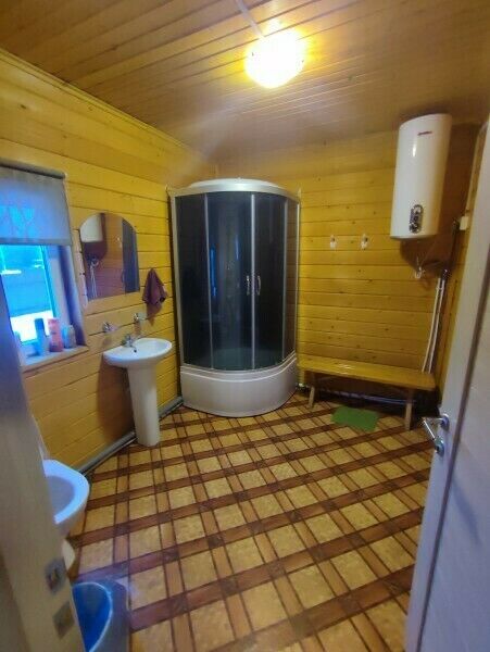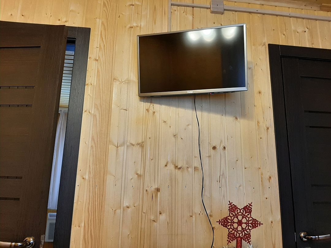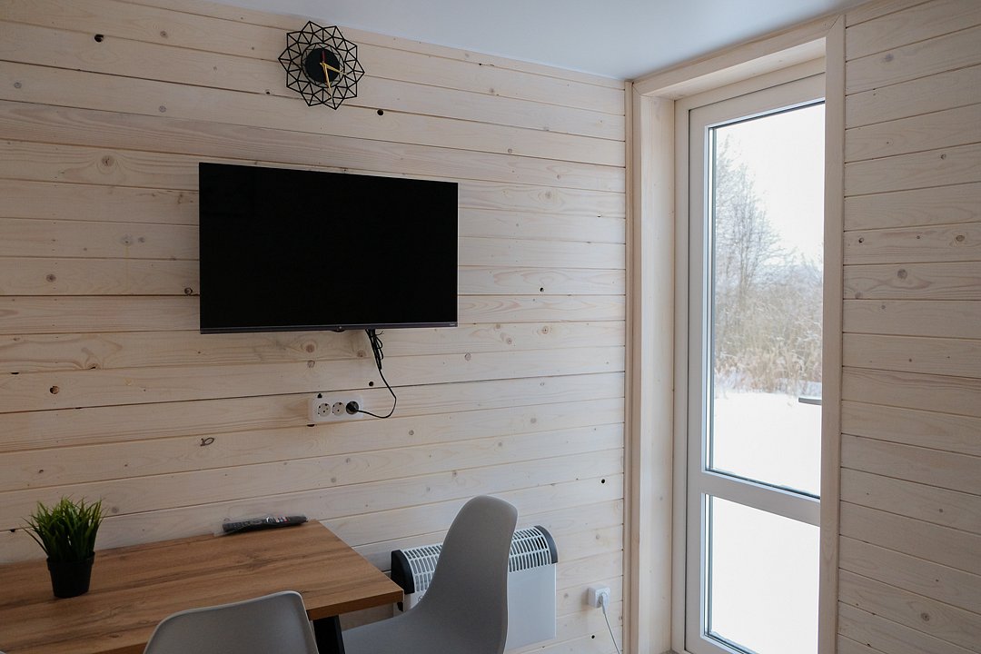 В доме две двуспальных тахты (180х200), шесть односпальных кроватей (99х203), жалюзи, отопление, вешалка для вещей, бесплатный WiFi, TV. В санузле — душевая кабина, туалет, раковина, набор полотенец для каждого гостя, зеркало, фен, ручной отпариватель по запросу.