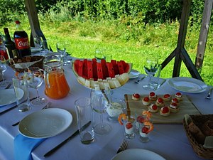 Гости могут воспользоваться беседкой «Гриль дворик» для проведения собственных праздничных мероприятий до тридцати человек. В беседке имеется вся необходимая для комфортного отдыха мебель, вместительный холодильник, термопот, микроволновая печь и бесплатный мангал для барбекю — осталось только привезти продукты с напитками или заказать питание.