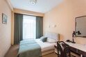 Путешествие с паройСтаренький, но приятныйЗаезжали в город на день, пройтись по достопримечательностям. Искали отель с минимальной ценой и хорошим рейтингом, только переночевать. Брали самый простой номер стандарт, понимали что отель старый с соответствующим ремонтом, но были приятно удивлены чистотой номера и гостиницы в целом. Санузел, мебель, ремонт - всё в отличном состоянии, хоть и старое. Не заметила ни пятен на ковре, ни плесени в санузле. Персонал приветливый.
