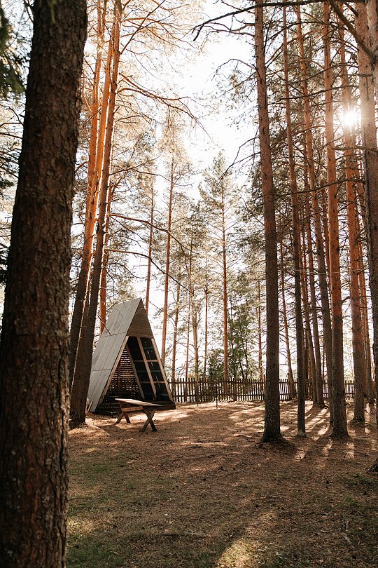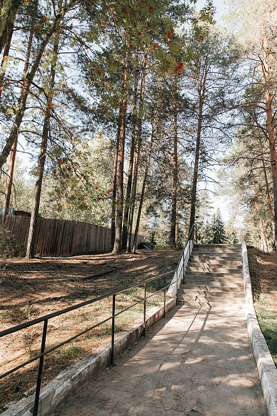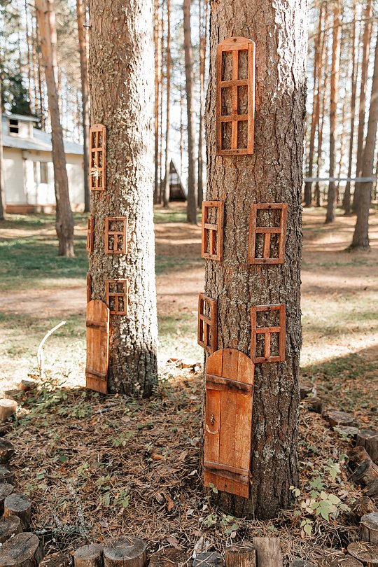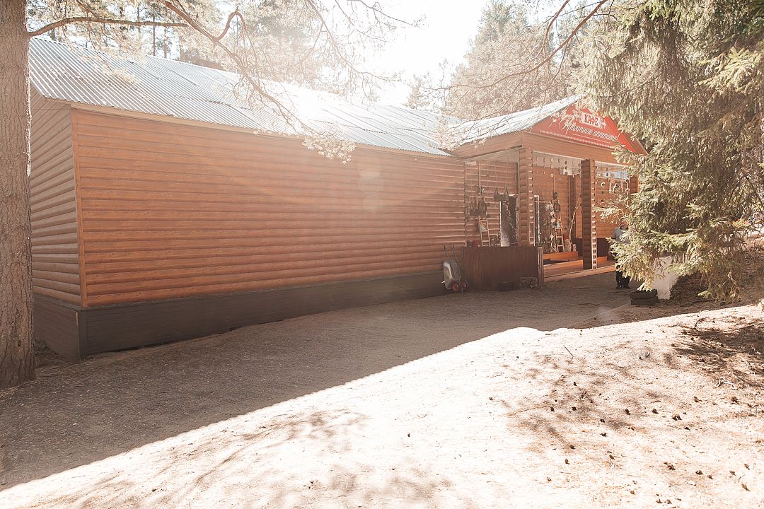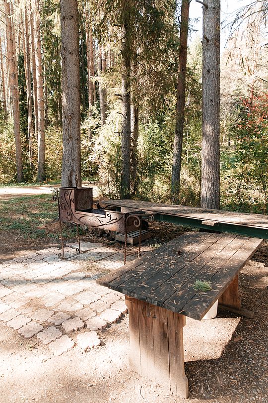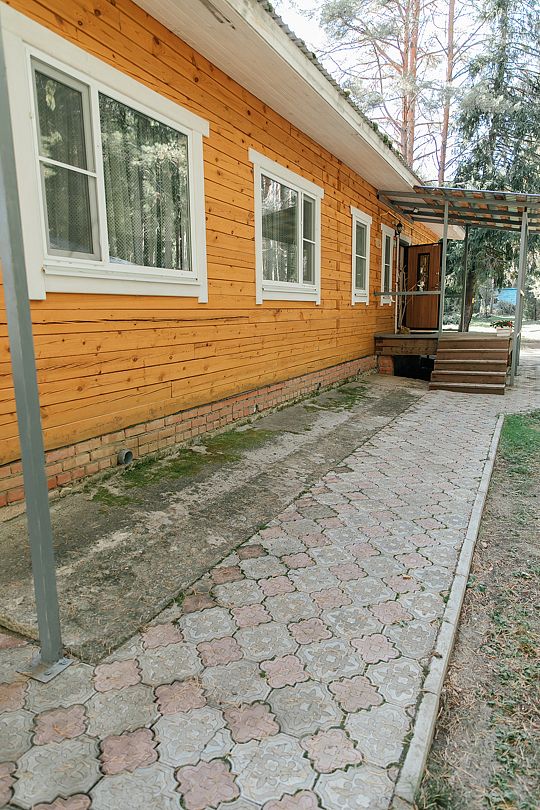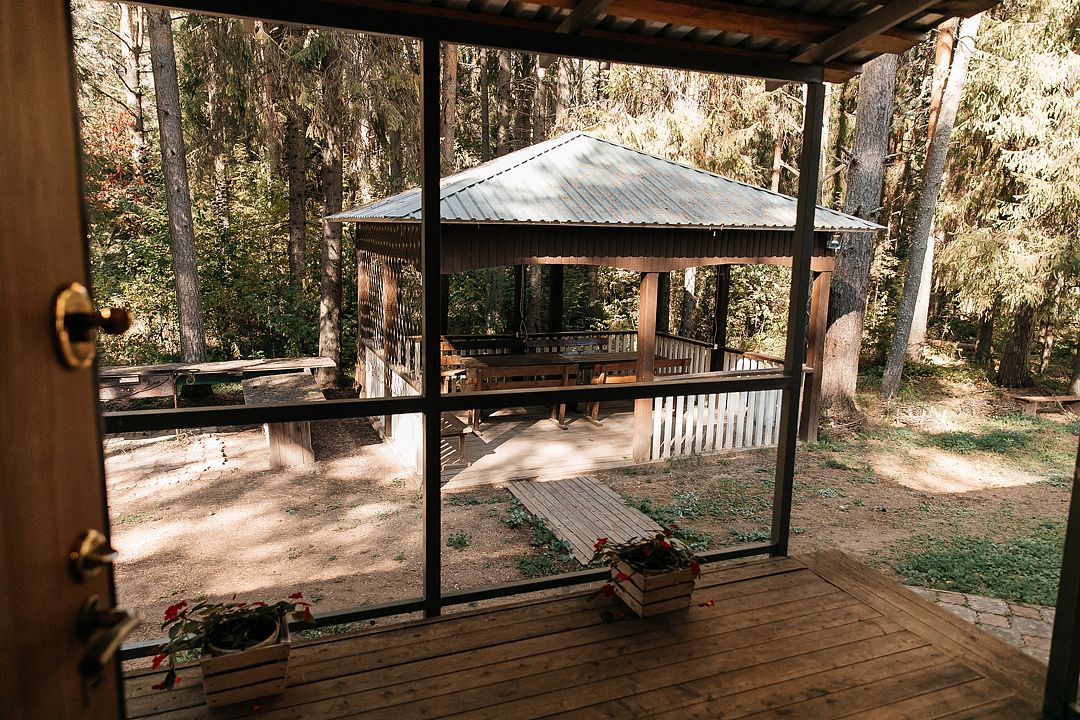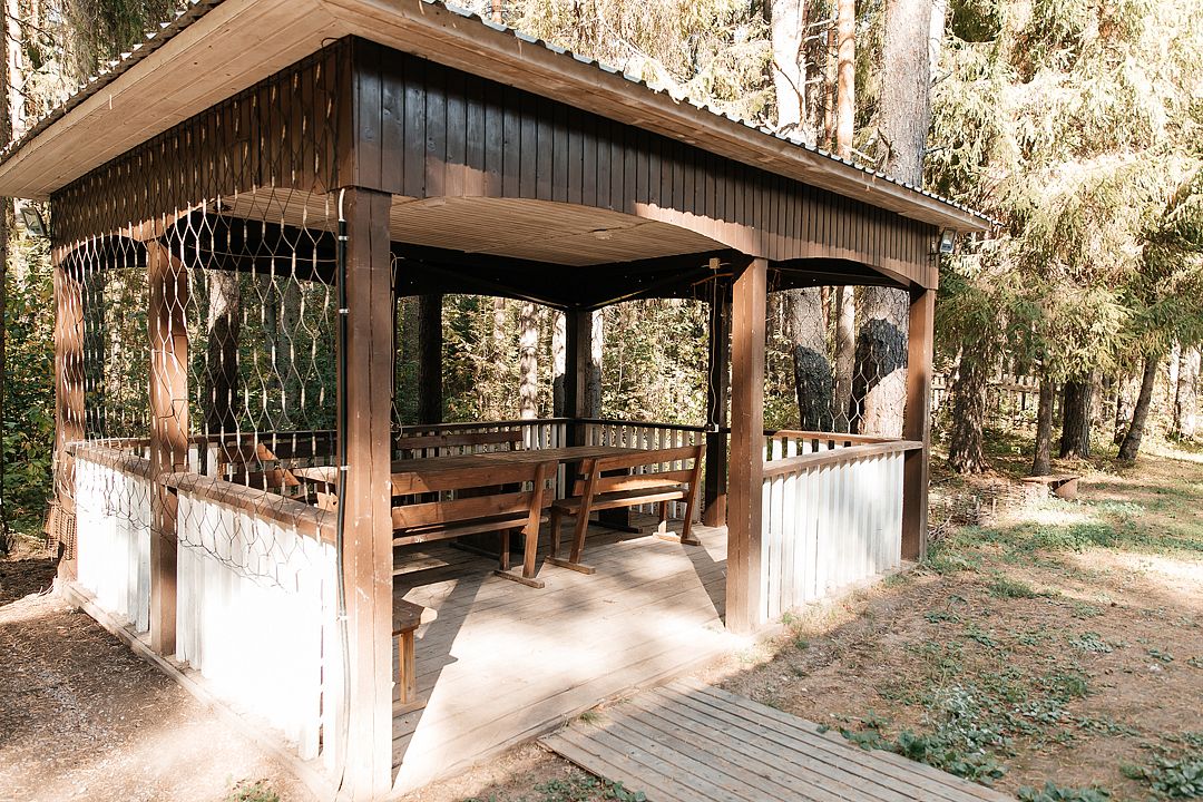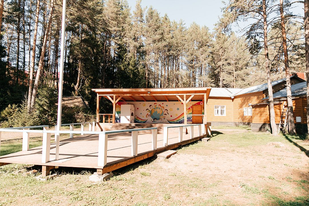 На территории есть просторная детская площадка с качелями, лазательными лестницами и канатами для развития ловкости и координации. Живописный лес вокруг создает уютную атмосферу.