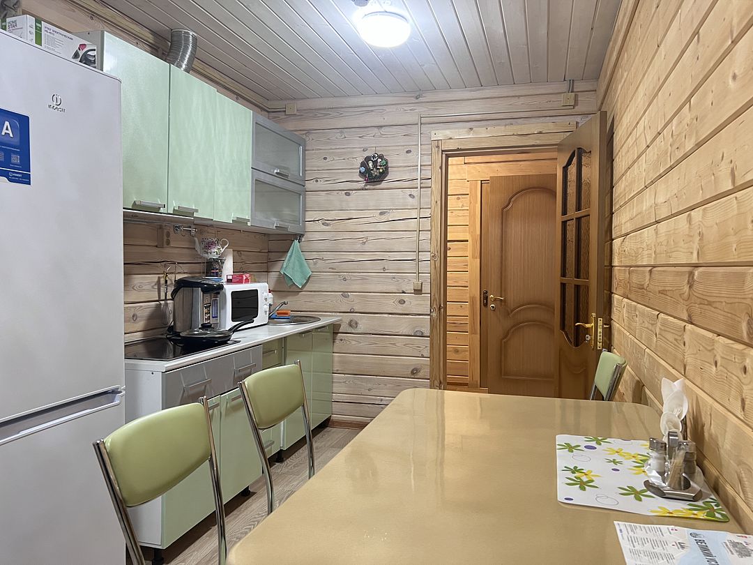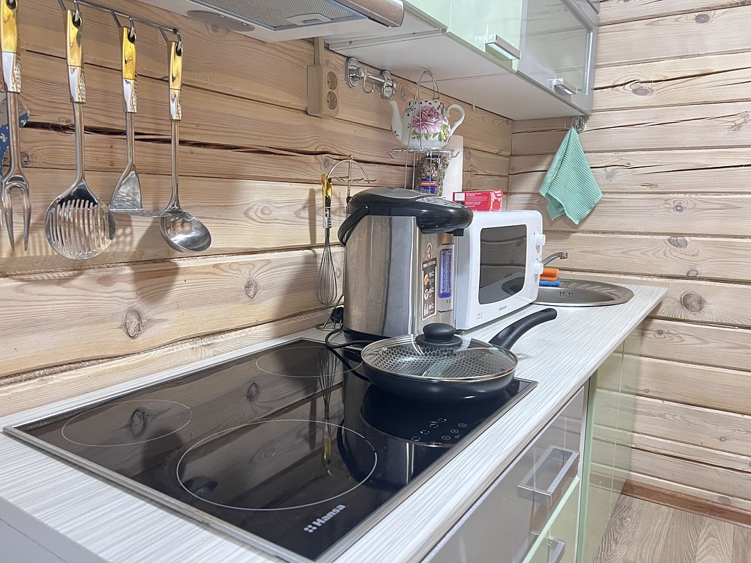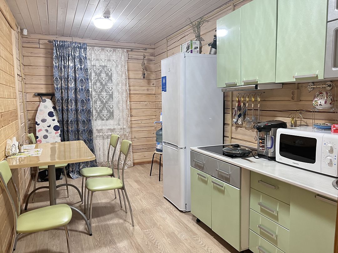 Полностью оборудованная кухня — на кухне коттеджа установлены все необходимые бытовые приборы: плита, микроволновая печь, чайник, холодильник и вся необходимая посуда. Здесь можно готовить и проводить время за обеденным столом с семьей и друзьями.