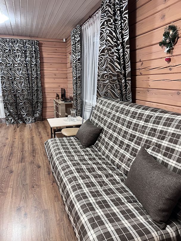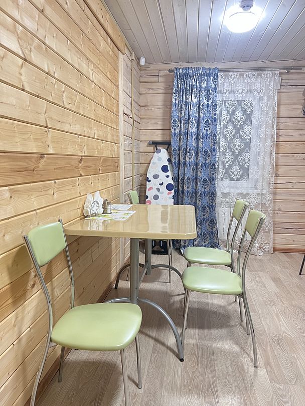 После банных процедур гости могут отдохнуть в специально отведенной зоне отдыха на восемь человек. Баня доступна для аренды до 22:00 для тех, кто не проживает в коттедже №7, чтобы обеспечить спокойствие отдыхающим. Гости этого коттеджа могут пользоваться баней в любое время и бесплатно, за исключением праздничных дней.