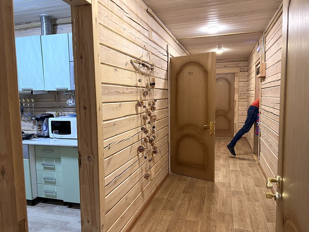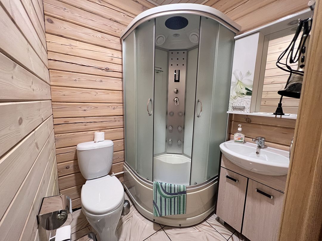 Уютные номера с личными санузлами. Каждая спальня в корпусе оборудована отдельным санузлом с душевой кабиной, что обеспечивает высокий уровень комфорта и приватности для каждого гостя.