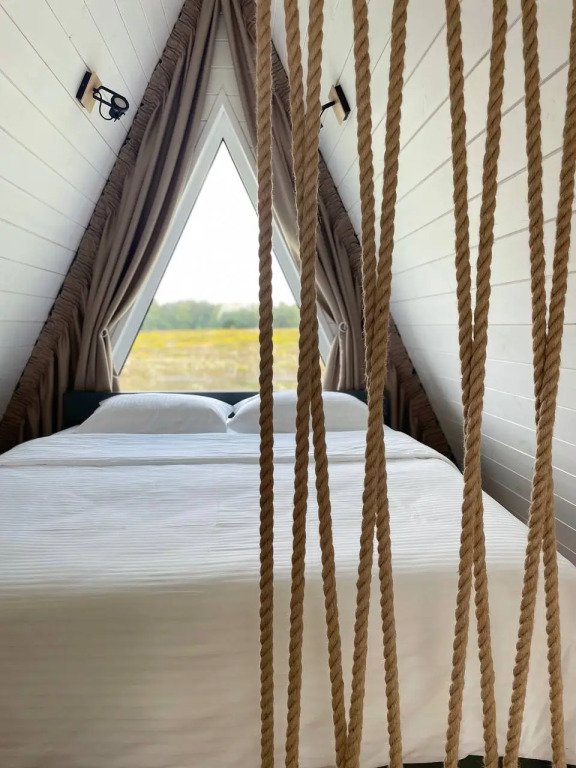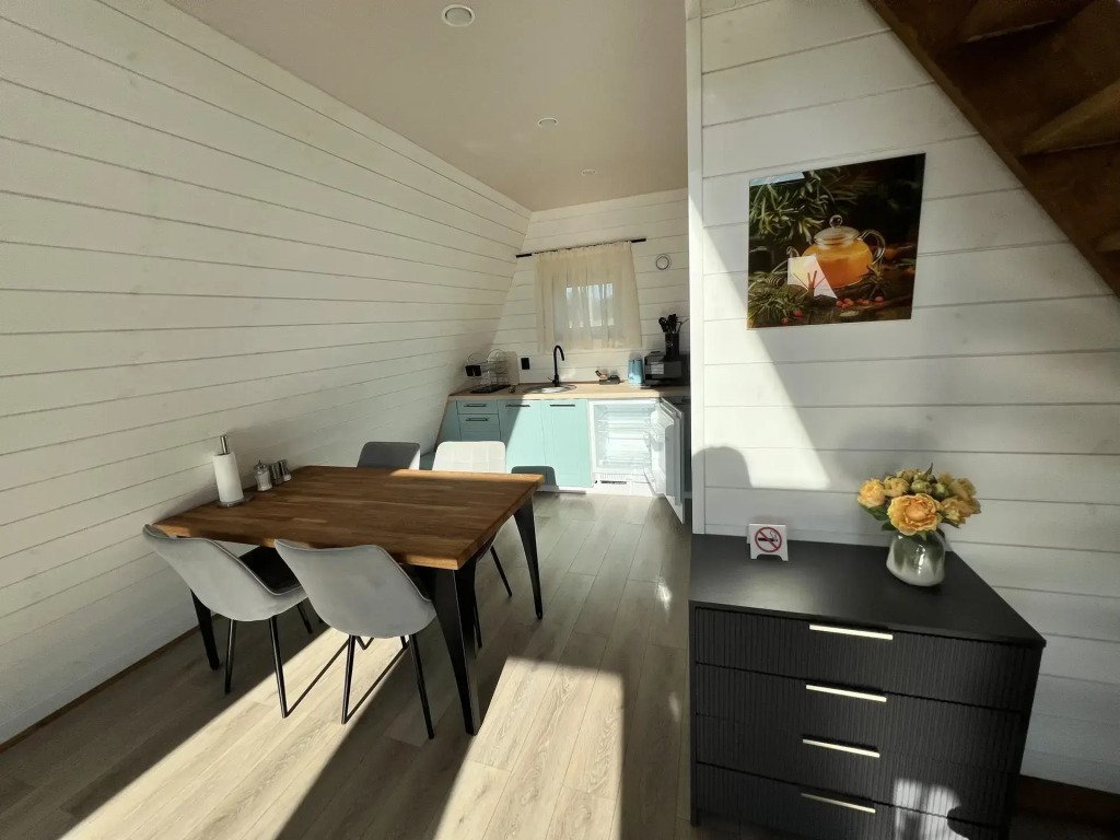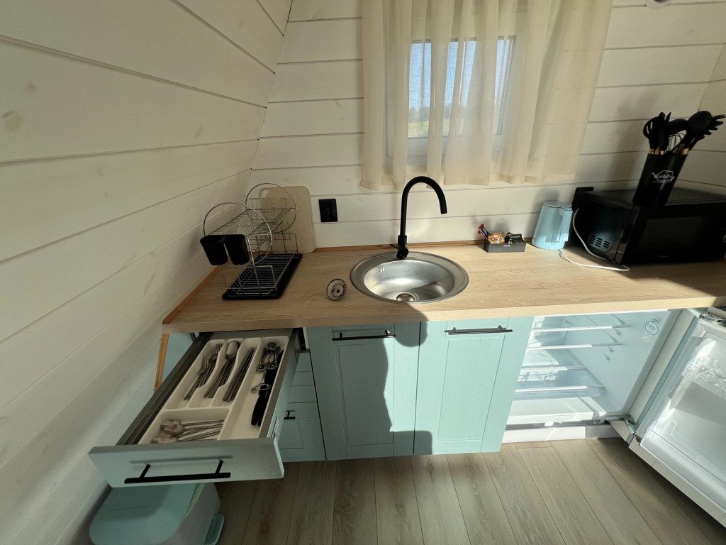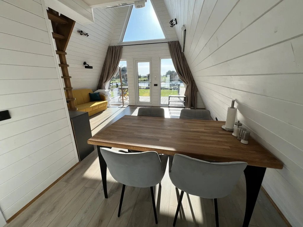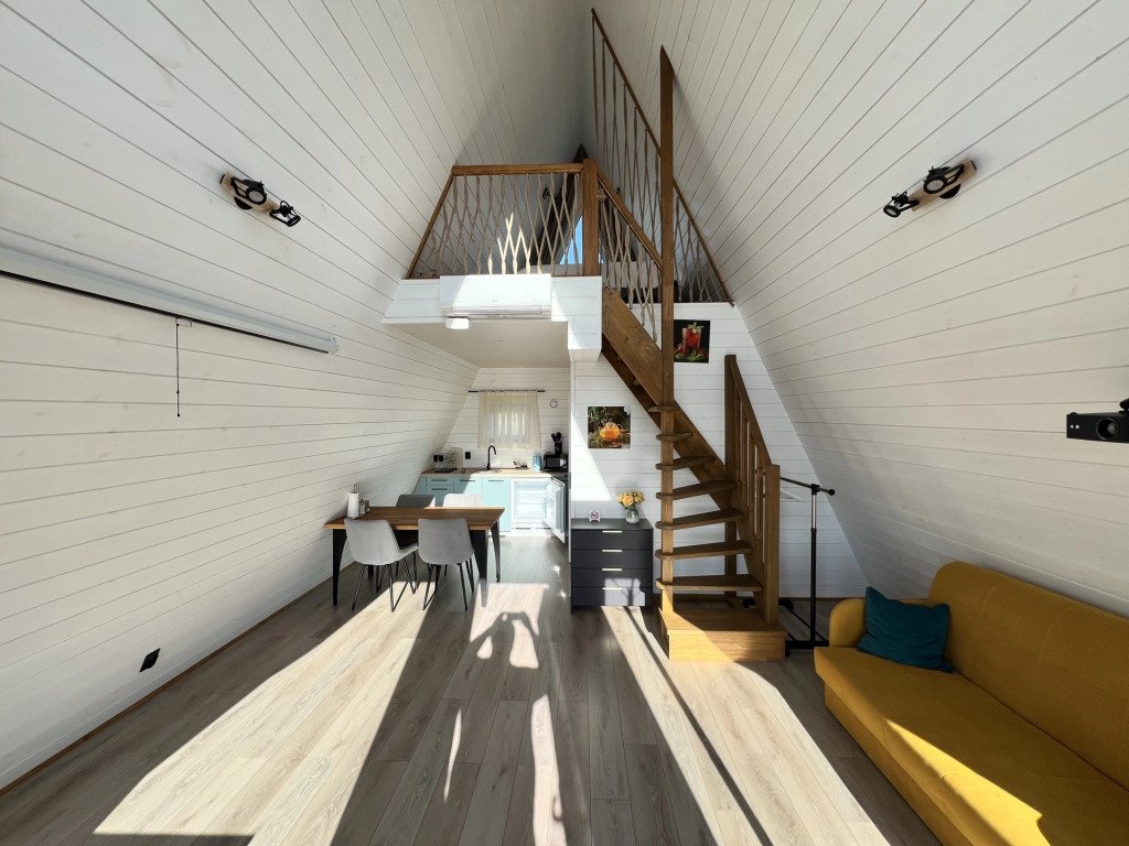 К услугам гостей баня на дровах, банный чан и дома на берегу озера, где гости могут порыбачить. Для размещения представлен коттедж типа «А-фрейм» с видом на озеро, с мебелью и техникой. В домах присутствует кухня.