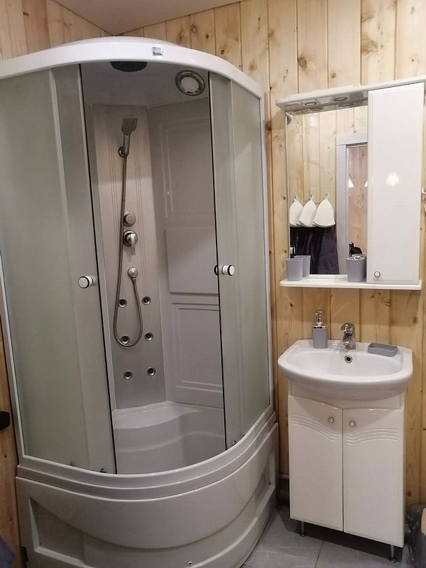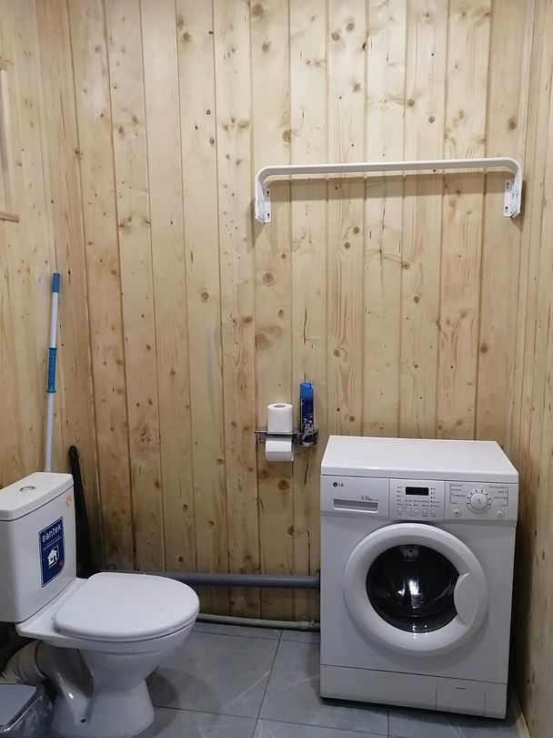 Санузел: душевая кабина, унитаз, раковина, стиральная машина, фен, утюг.