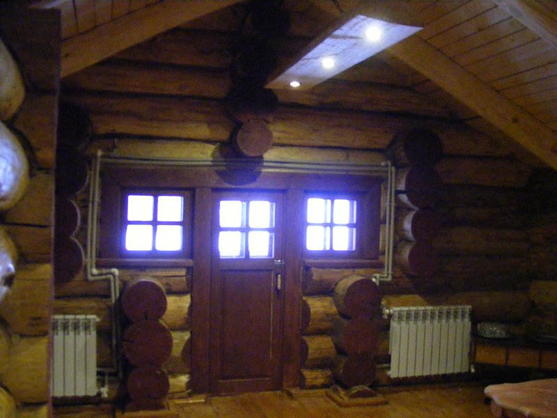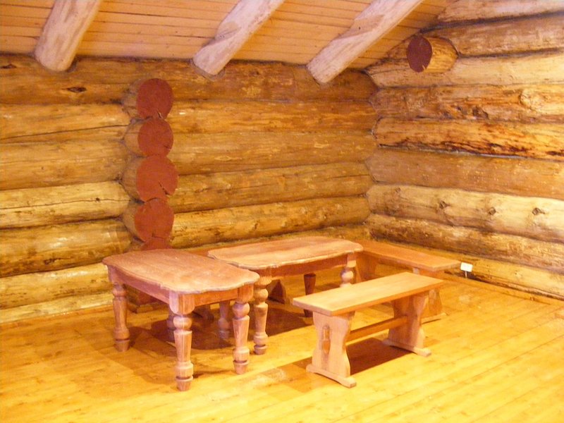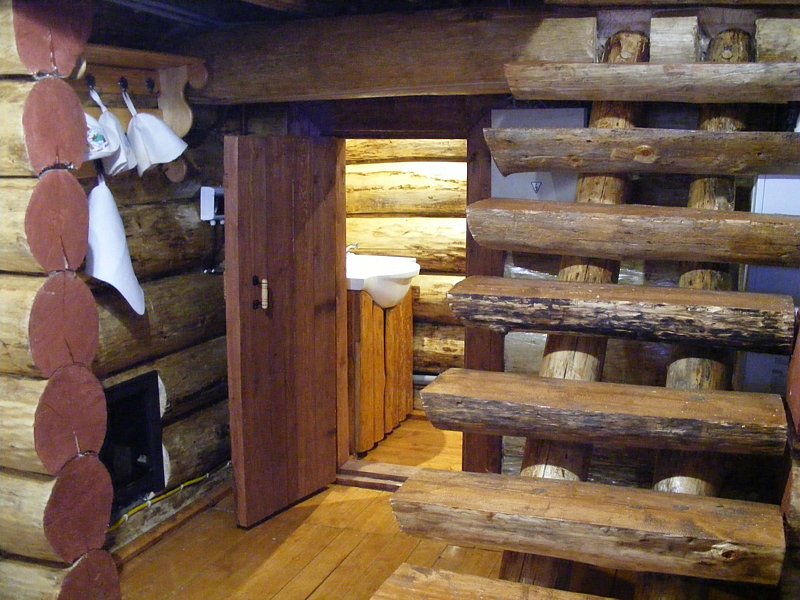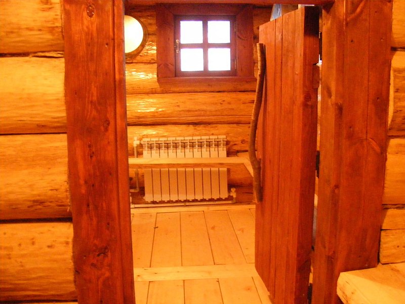 Первый этаж для водных процедур — осиновый. Второй этаж для отдыха, это большой сосновый зал. Древесина осины — производная современных жаропонижающих, болеутоляющих препаратов, антибиотиков. Осина обеззараживает воду.