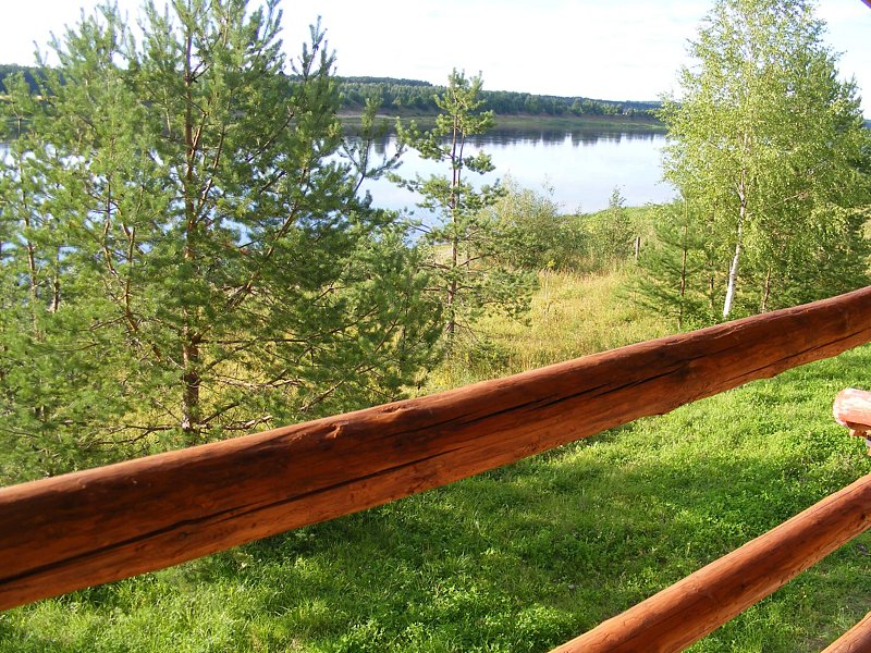Летняя беседка Усадьбы соединила в себе воедино три сооружения, каждое из которых рассчитано для отдыха в любую погоду. В ветреную погоду — левая, закрытая беседка. Правая — для нахождения в ней в солнечную погоду. Третья, верхняя, с балконом на реку подходит для жаркой летней погоды.