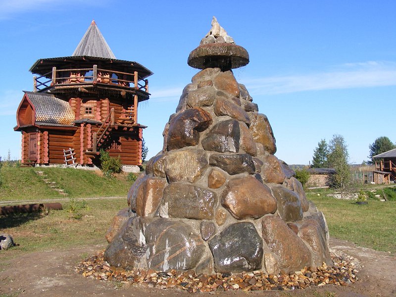 На территории Усадьбы расположен уникальный фонтан, воздвигнутый из многотонных валунов олицетворяющий собой суровую красоту Русского Севера. Тихий шелест ниспадающего водного потока дополняет идиллию Усадьбы.