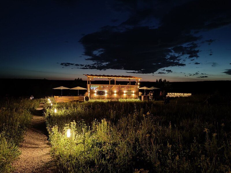 «Astroglamp» это уникальное место, где соединяются элементы глэмпинга, музея, лекционного зала и наблюдательного пункта с телескопами, расположенное всего в двухчасовом расстоянии от столицы. Здесь есть возможность отдохнуть среди природы в уютных шатрах, встретиться лицом к лицу с небосклоном в компании экспертов-астрономов, посетить лекции и кинопоказы на научно-популярные темы.