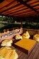 Общим санблок, состоящий из биотуалетов и мобильной душевой с теплой водой, в шатре: стол, светильник, полотенца, собственная зеленая зона