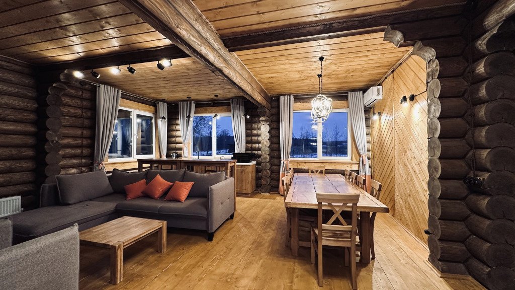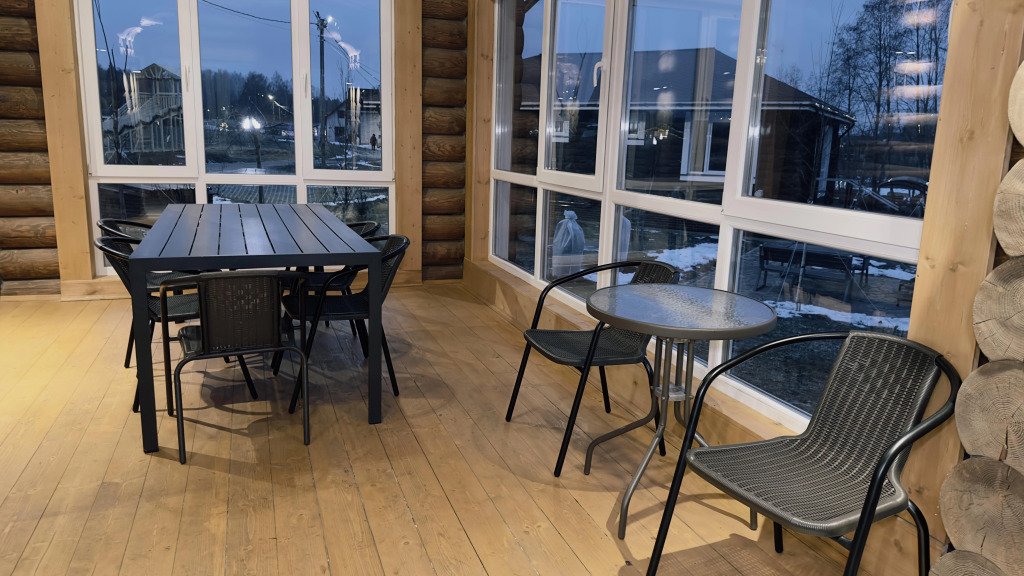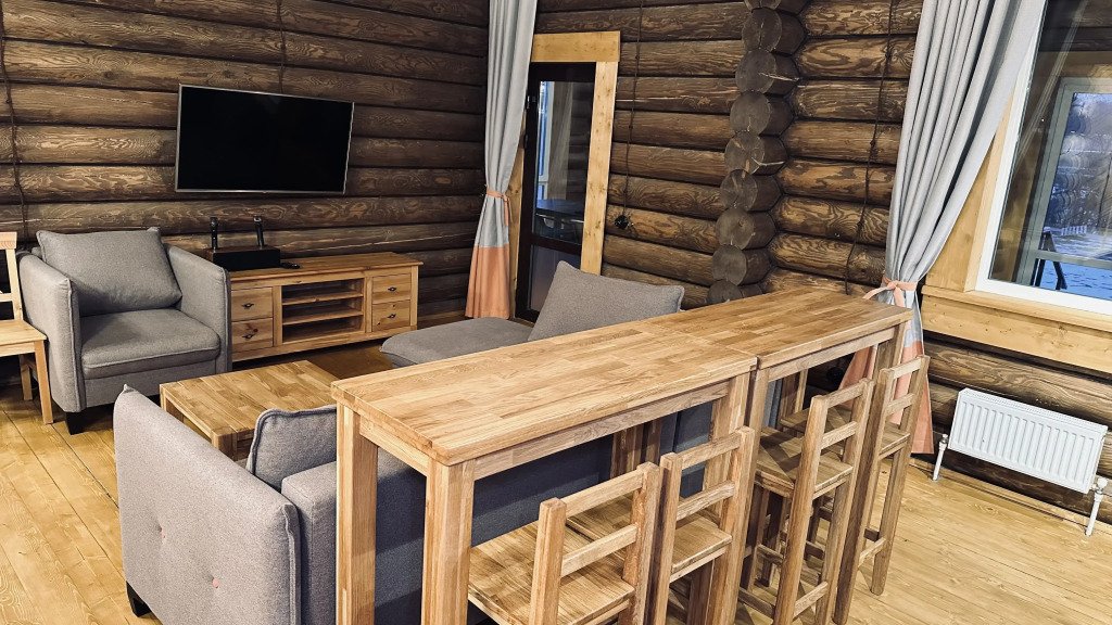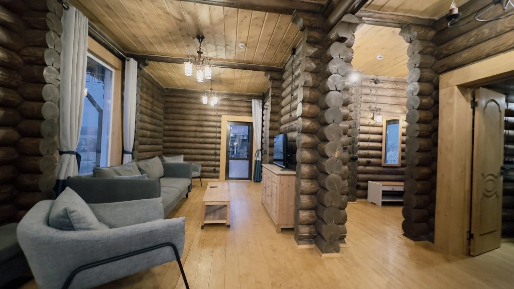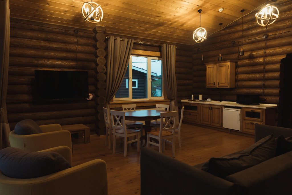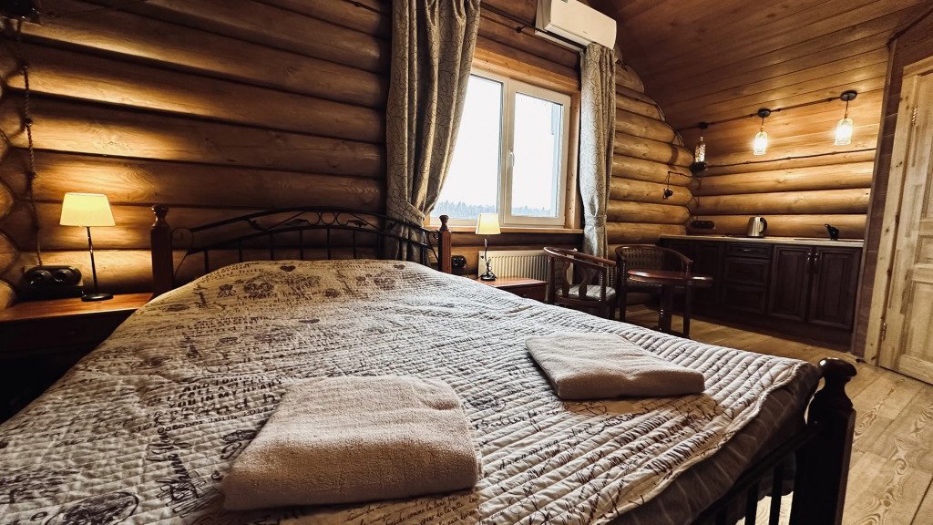 На территории расположены дома из сруба с современными удобствами.