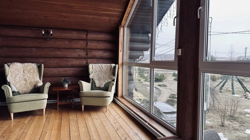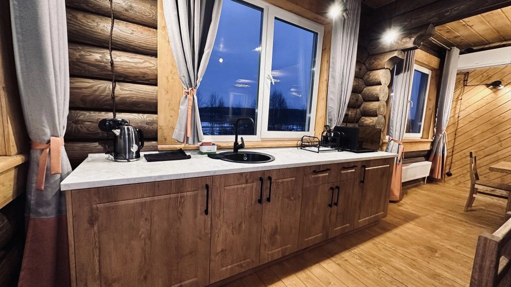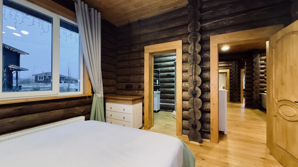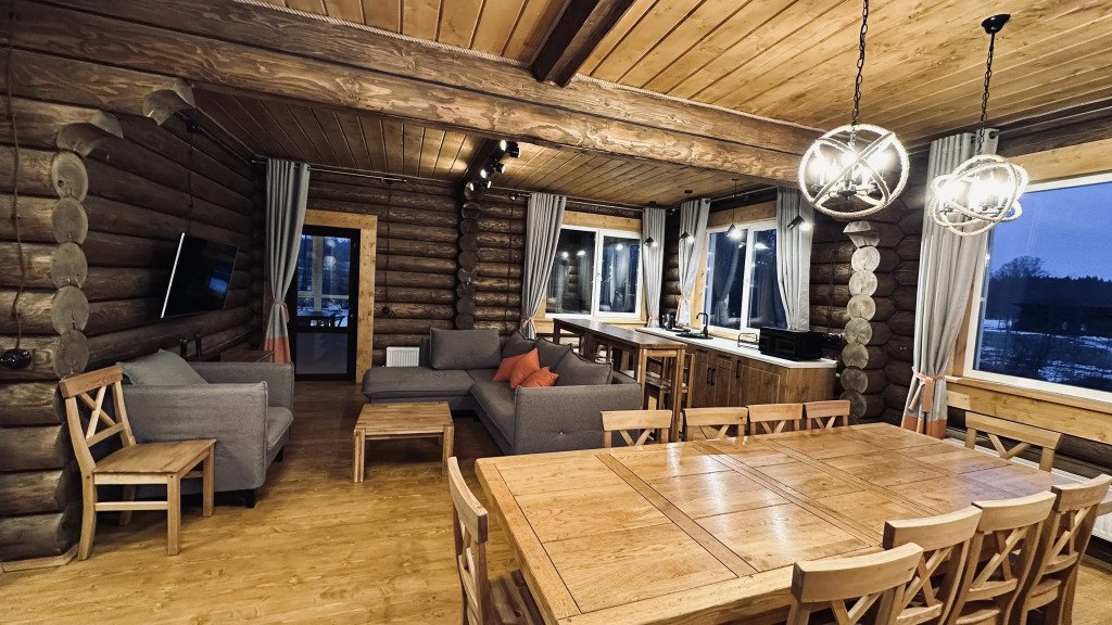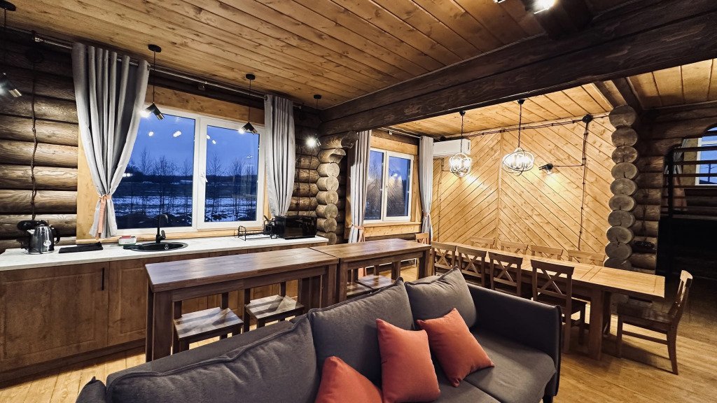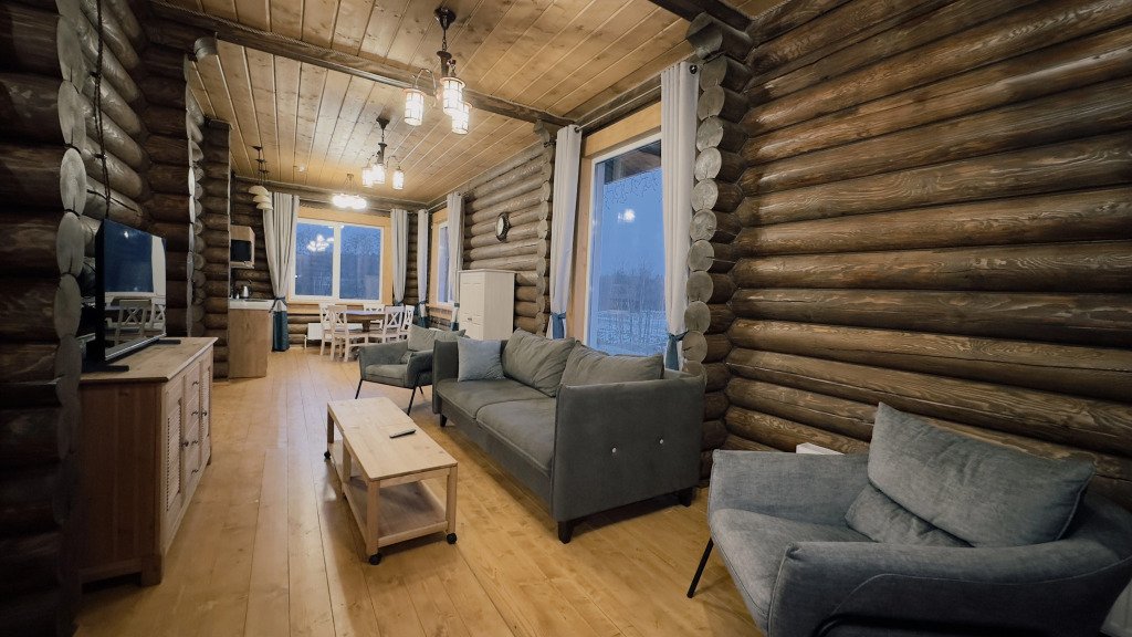 На территории расположены дома из сруба с современными удобствами.