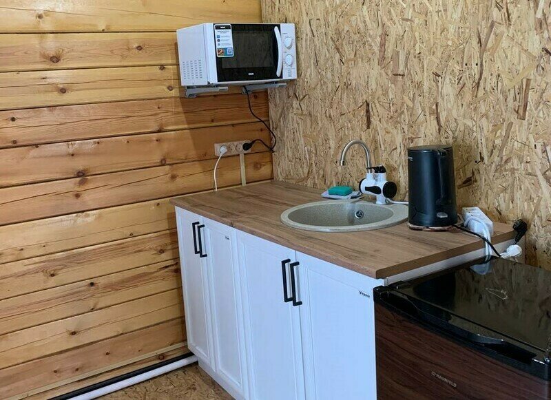 Для проживания оборудованы домики, предусматривающие размещение до 6 человек. В номерах минималистичный интерьер: матрасы-трансформеры, диван, набор посуды, микроволновая печь, плита, холодильник, ТВ, санузлы оборудованы отдельно на территории.