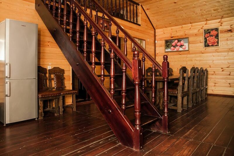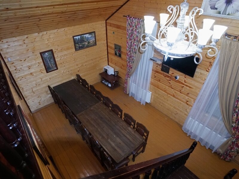 - удобная гостиная с большим дубовым столом за которым комфортно разместятся 18 человек,