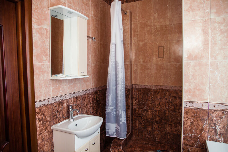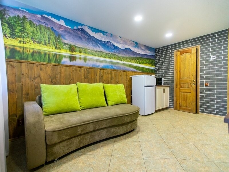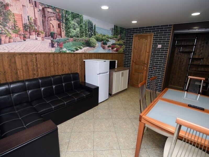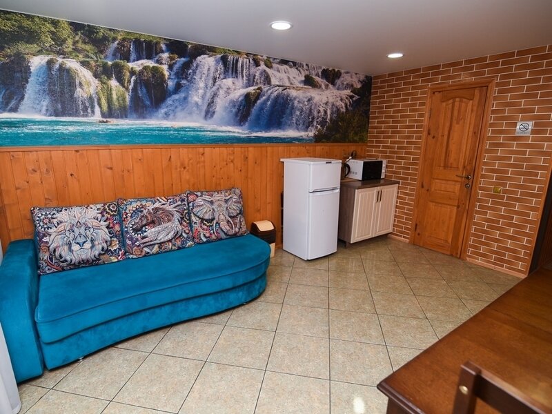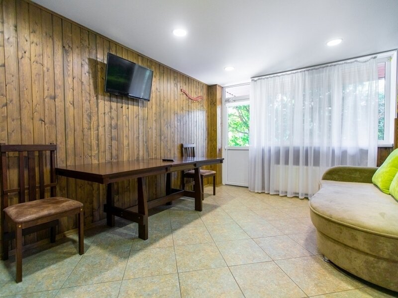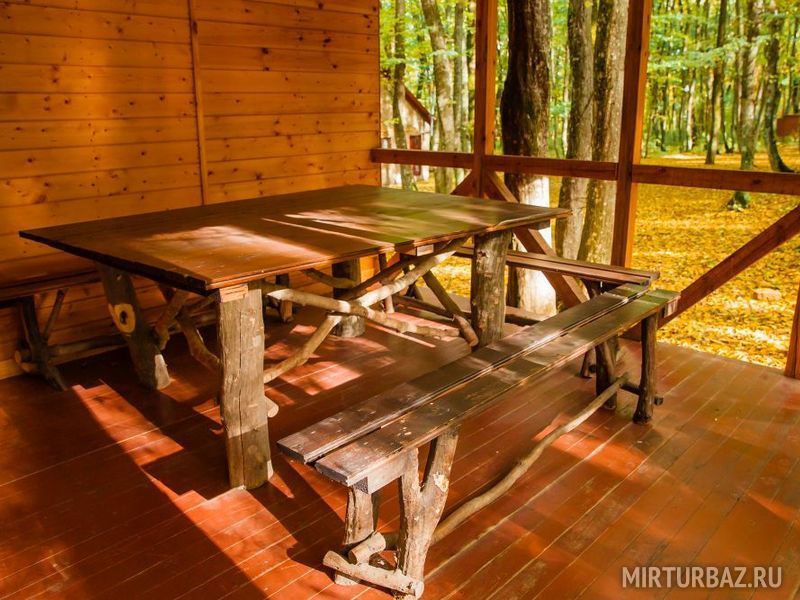 Номер категории «Номер с большой террасой» — Номер имеет собственный выход на улицу, есть терраса на которой могут разместиться до 15 человек. В номере двухспальная кровать, холодильник, чайник, санузел с душевой кабинкой. Рядом с номером мангальная зона.