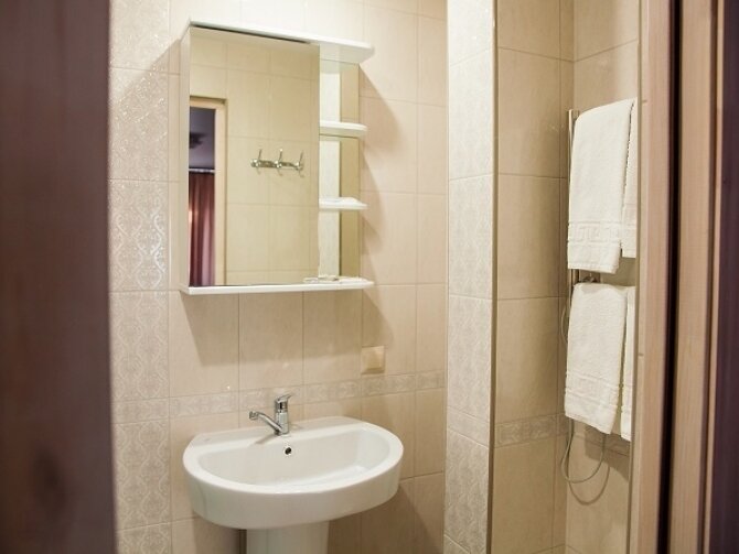 В номере душ с горячей водой, санузел, 2-х спальная или 2 односпальных кровати, чайник, рядом беседка.