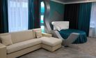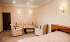 В номере: 2-е комнаты, в большой 2-х спальная кровать, диван и кресла, стол, телевизор, в маленькой 2-х ярусная кровать пуфики, в прихожей шкаф и зеркало, санузел с ванной и биде.