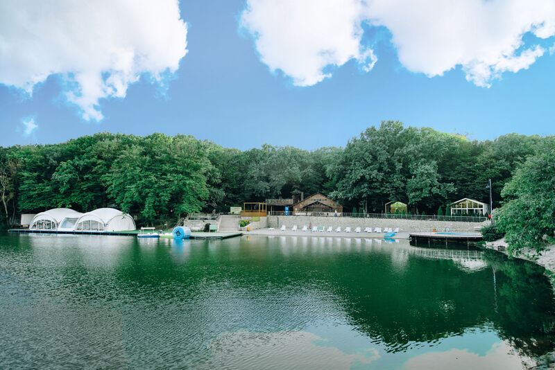 Для проживания гостям предоставляются номера в туристическом комплексе и отдельно стоящие домики, расположенные на берегу озера. Для отдыхающих имеется оборудованный лежаками пляж.