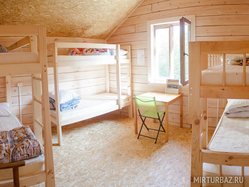 Терем Европейский - 28 спальных мест, на первом этаже оборудована кухня, санузлы. Спальни на 1 этаже - комната 4 места, и комната 5 мест, на втором этаже 2 комнаты по 4 места и 2 комнаты по 6 мест.