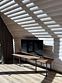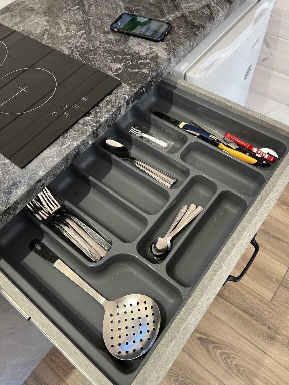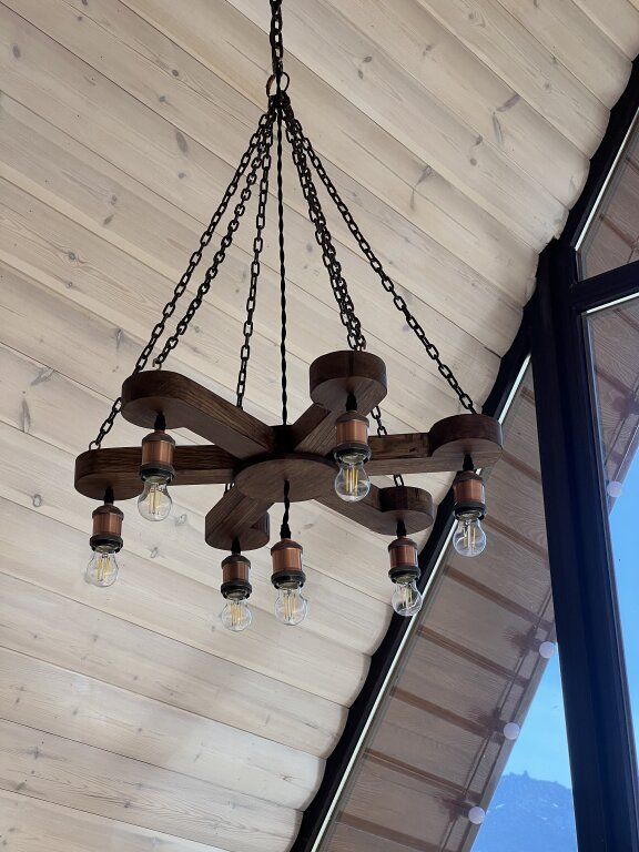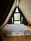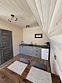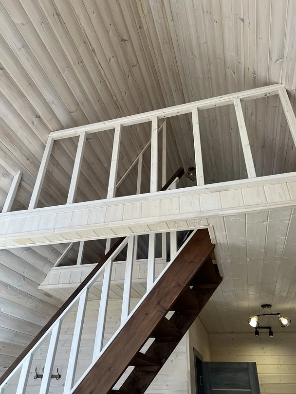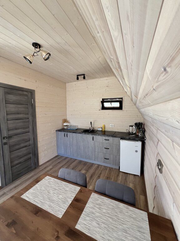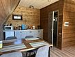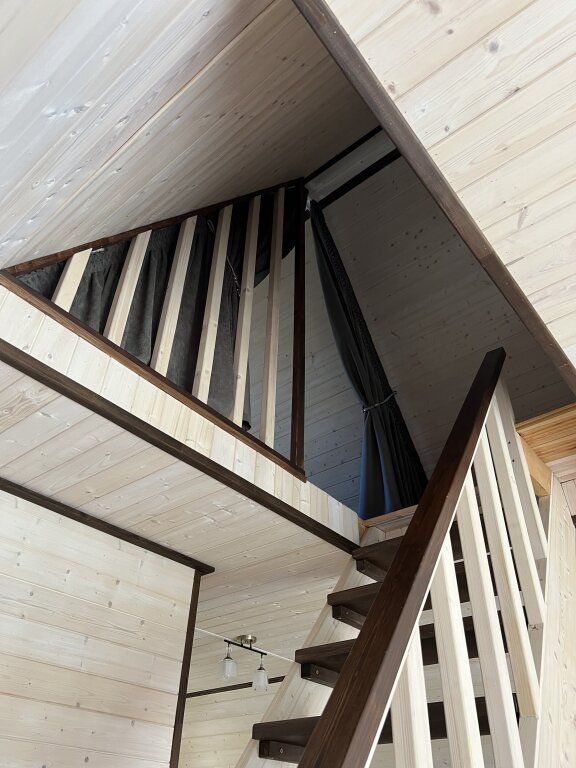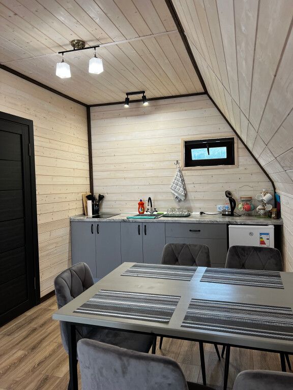 На первом этаже расположена просторная гостиная с большим угловым раскладным двух-спальным диваном, а также столовой, оборудованной кухней и санузлом. На втором этаже уютное двуспальное место.