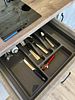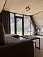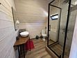 На первом этаже расположена просторная гостиная с большим угловым раскладным двухспальным диваном, а также столовой, полностью оборудованной кухней и санузлом. На втором этаже предусмотрена одна двуспальная и две односпальных кровати, либо вариант с двумя двухспальными местами.