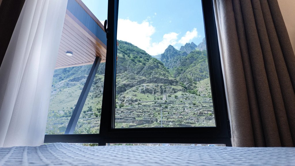 Подходящий вариант для бюджетного отдыха — отель «Отель Караван» расположен в Верхней Балкарии. Этот отель находится в 3 км от центра города. Рядом с отелем — Верхние Голубые Озёра, Дигорское ущелье и Чегемские водопады.