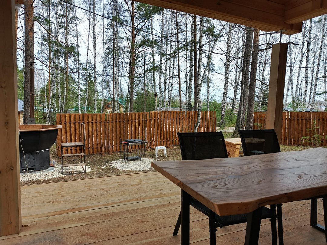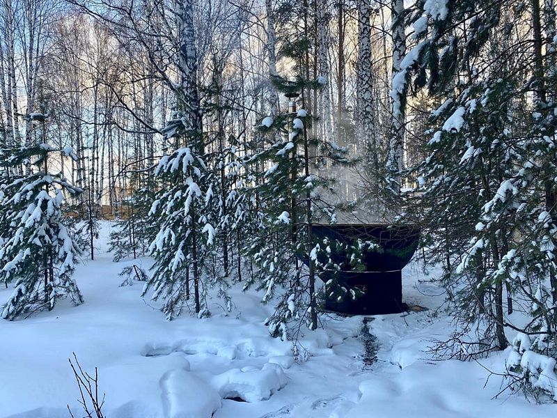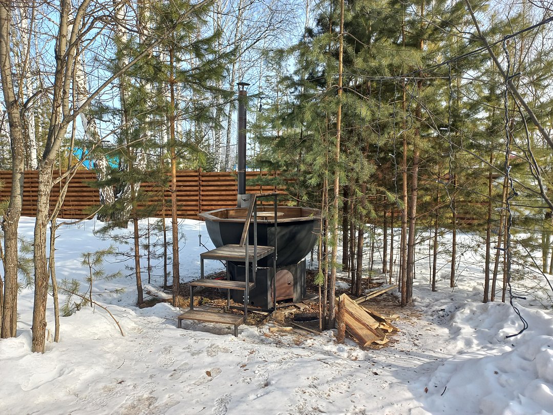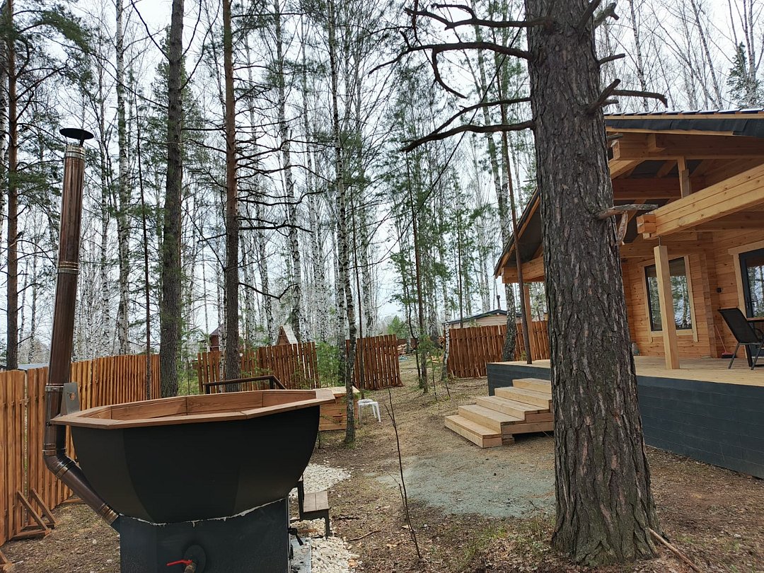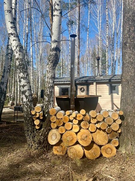 Каждый банный чан с домиком расположен на отдельном участке 15 соток, имеет отдельную мангальную и гриль зону.