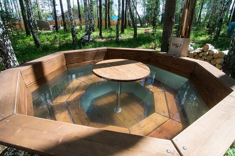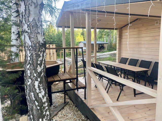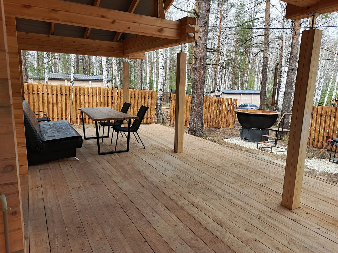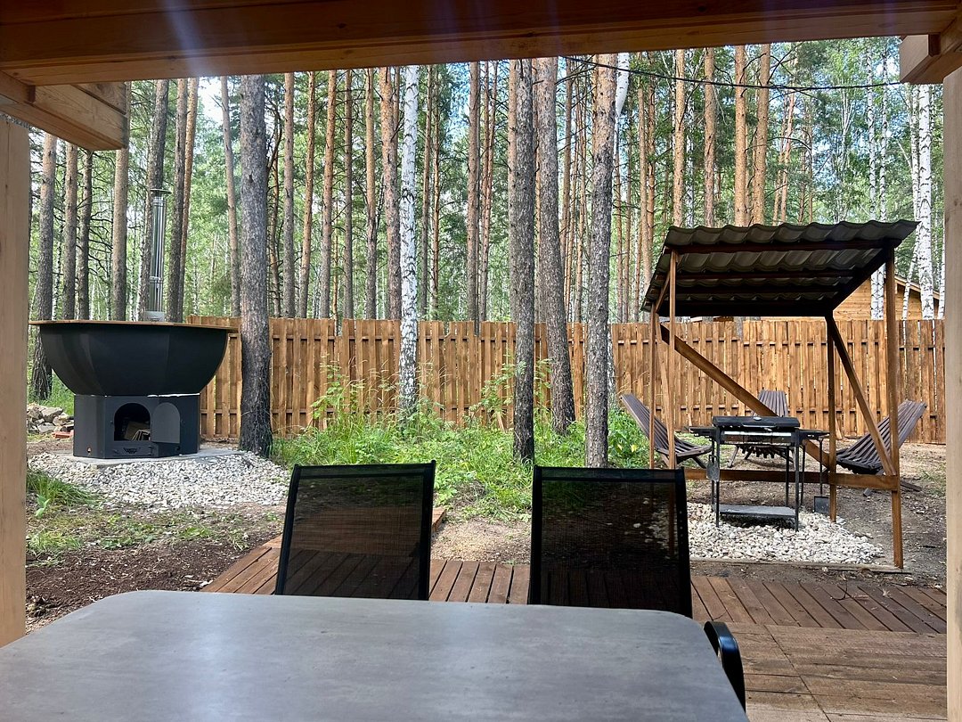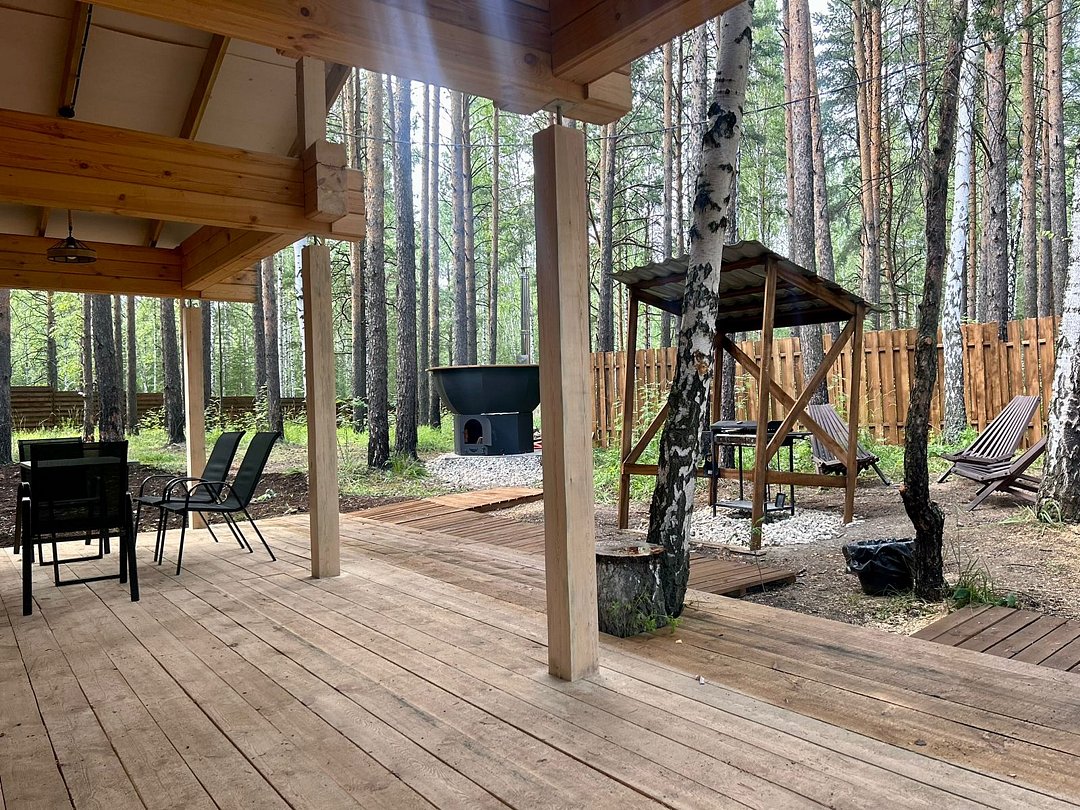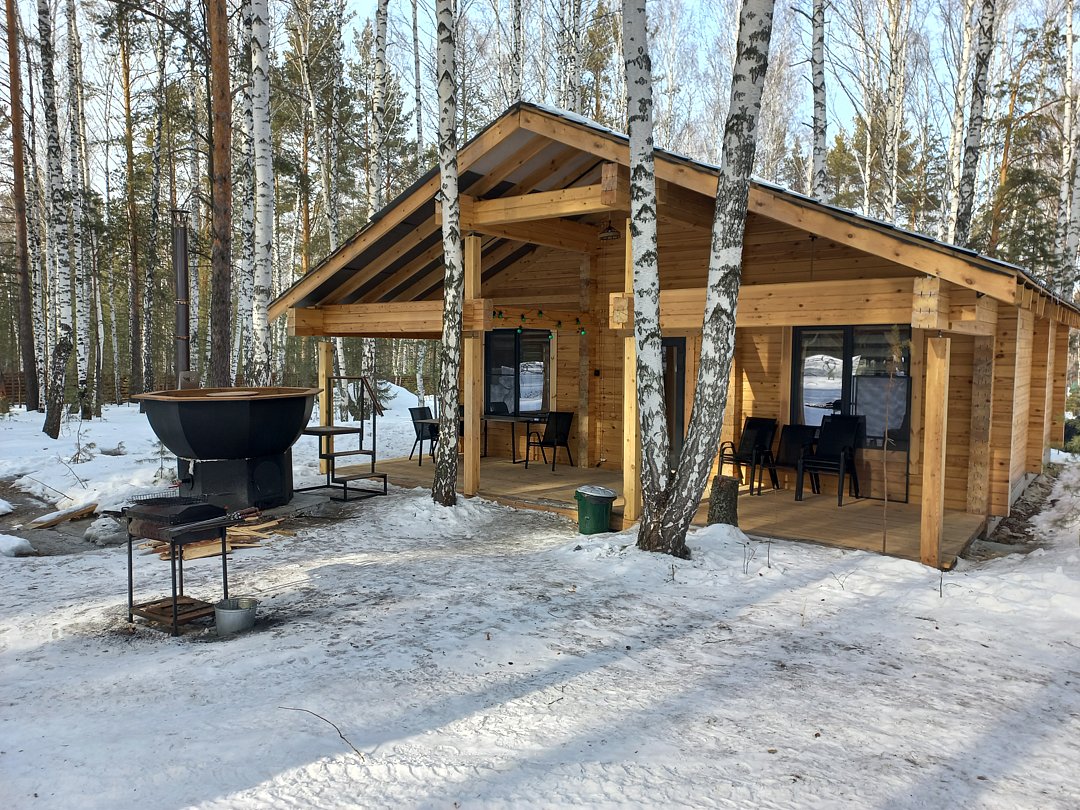 Каждый банный чан с домиком расположен на отдельном участке 15 соток, имеет отдельную мангальную и гриль зону.