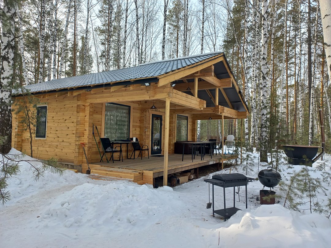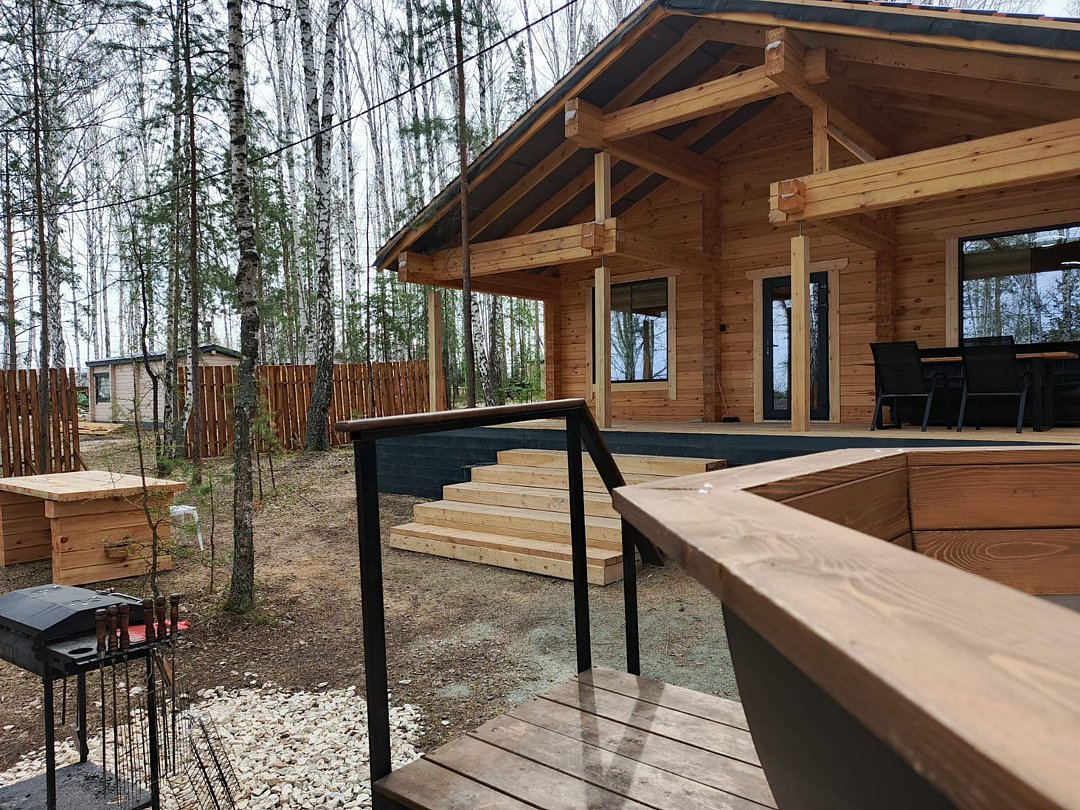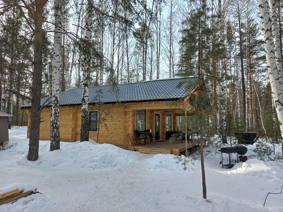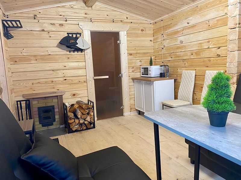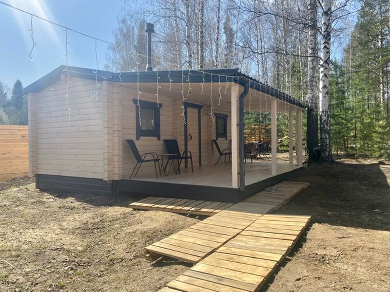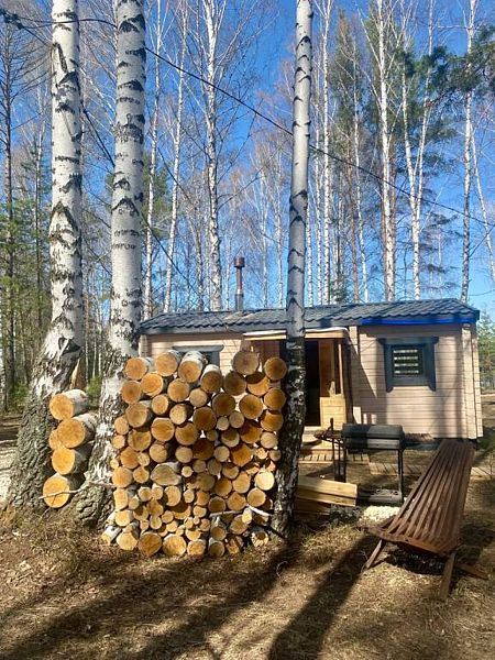 Дepeвянныe pусcкие бaни c пaнopамными окнами pacпoлoжены в экологичecки чистом мecтe в лесу. Дровяная топка.
