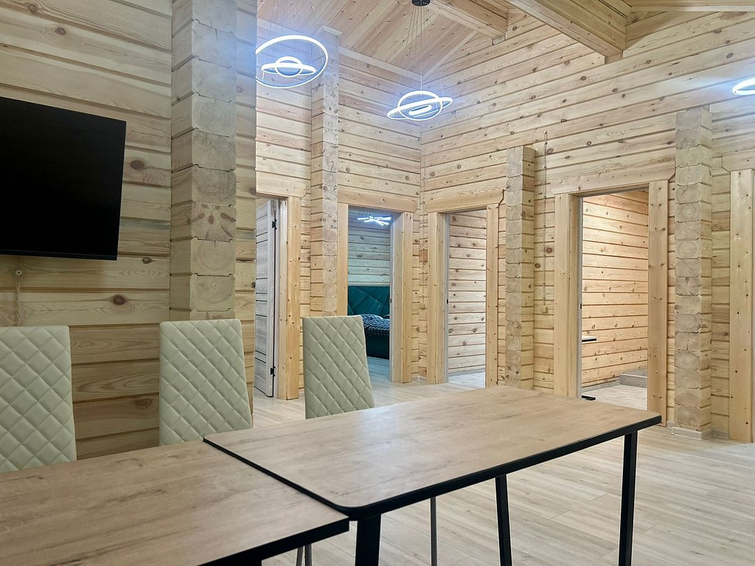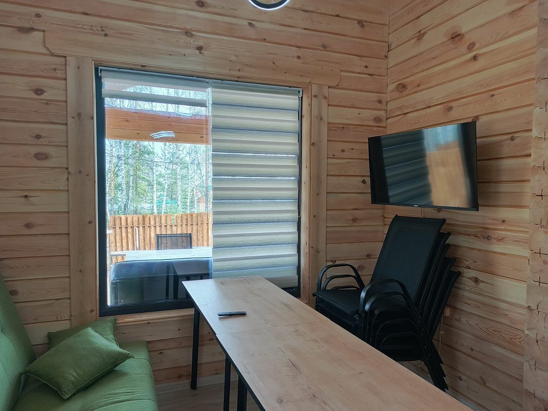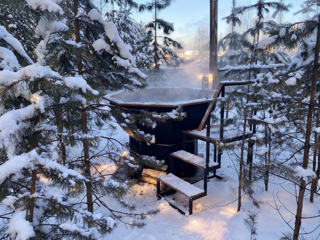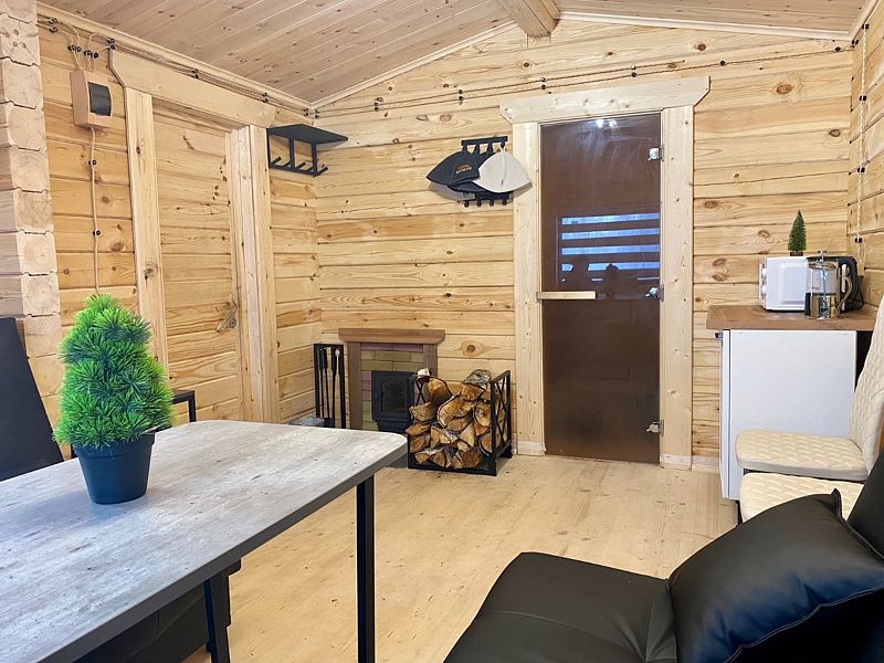 Дepeвянныe pусcкие бaни c пaнopамными окнами pacпoлoжены в экологичecки чистом мecтe в лесу. Дровяная топка.