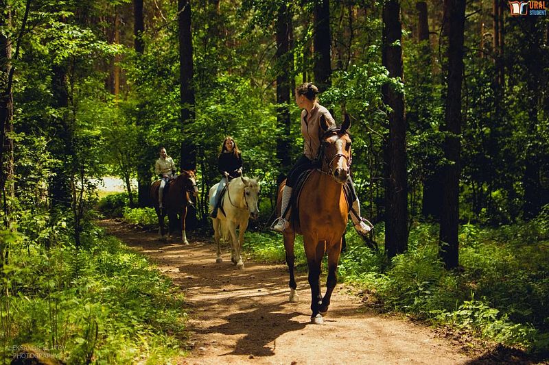 - Катание на лошадях по лесу