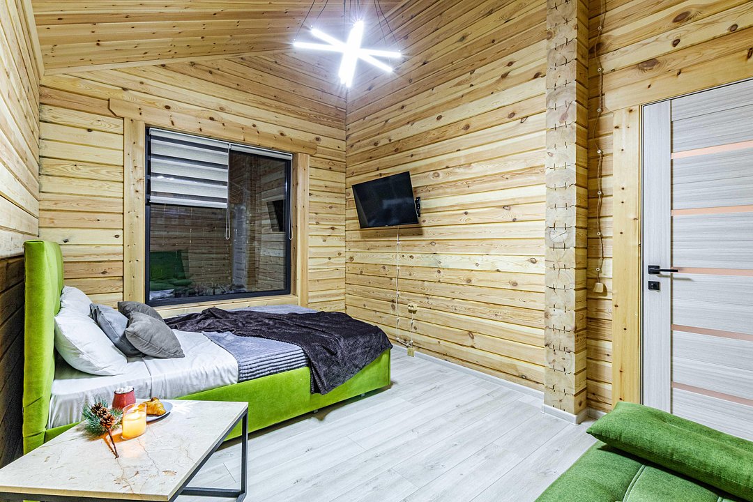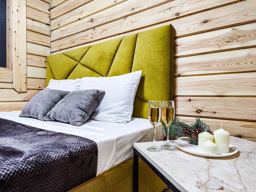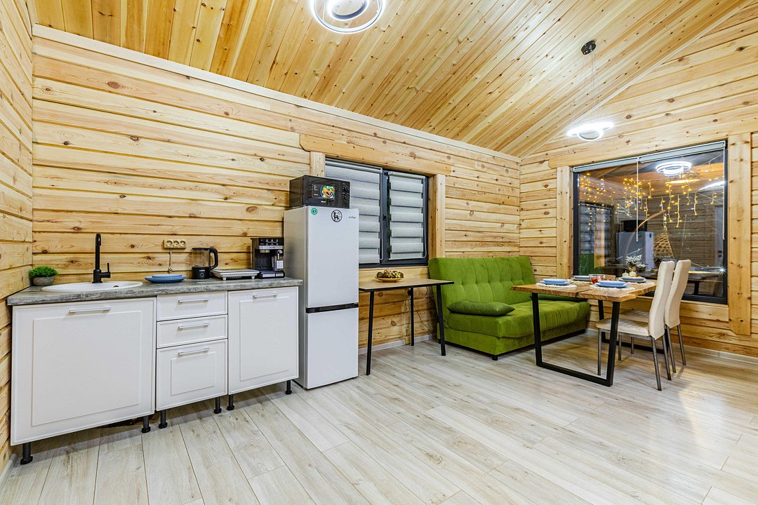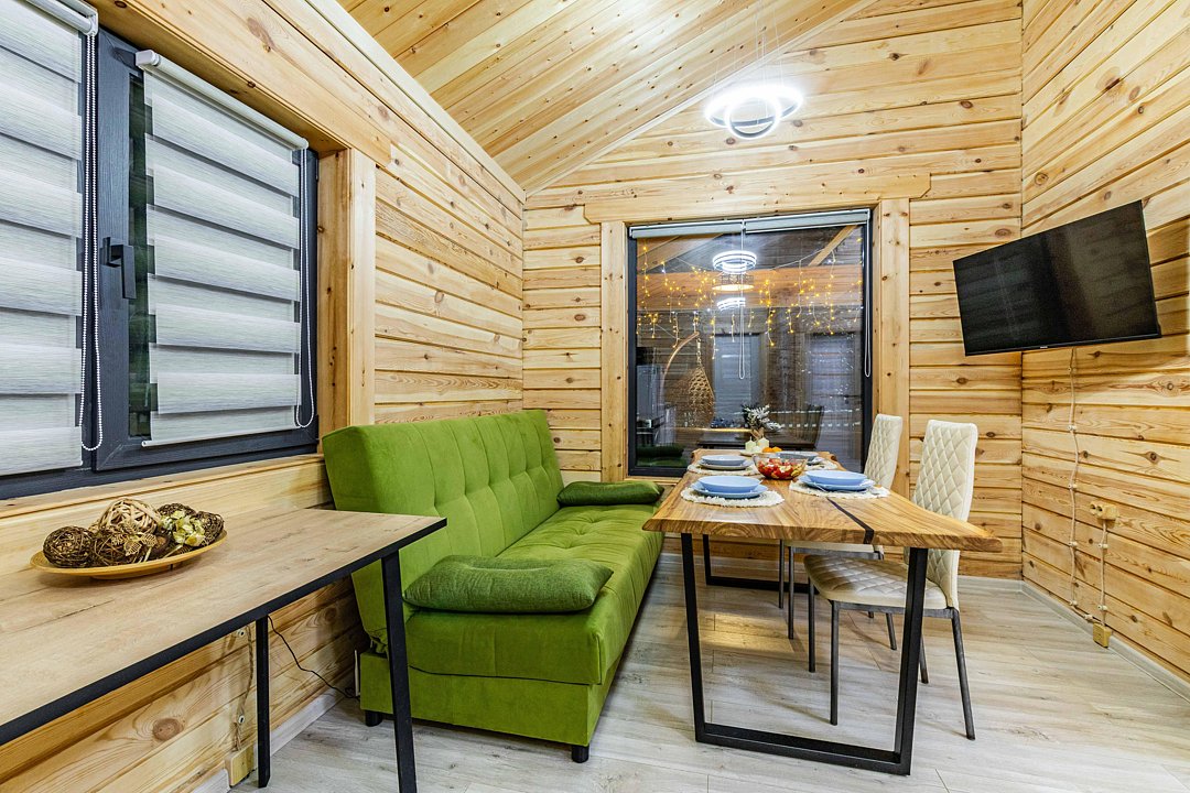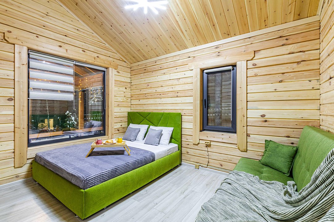 Уютные эко-коттеджи идеально подходят для больших компаний; домики-бани с верандой и купелью позволят расслабиться, а беседки с мангалам — приготовить вкусный шашлык и отдохнуть на свежем воздухе.