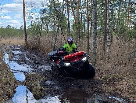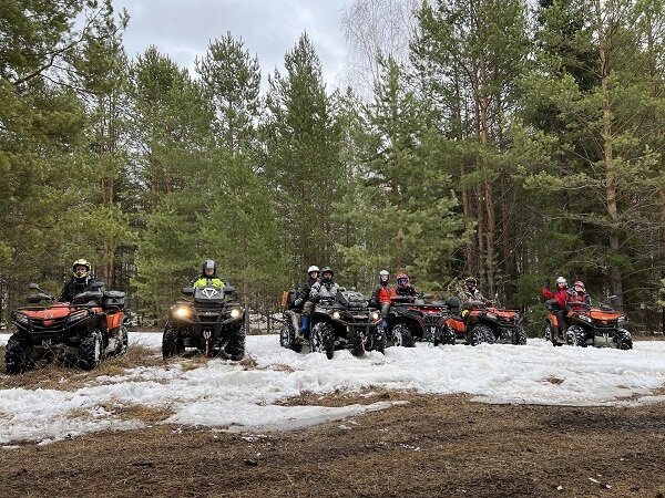 В распоряжении базы отдыха утилитарные квадроциклы китайской компании CFMOTO. В базовую комплектацию входит полноприводная трансмиссия с блокируемым дифференциалом, понижающей передачей, независимые подвески, гидравлическая тормозная система.