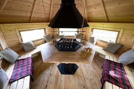 Теплые домики укомплектованы всем необходимым для того, чтобы можно было даже в непогоду с комфортом посидеть за накрытым столом. Запах натурального дерева, блеск пламени и горячих углей, аппетитный аромат жарящегося мяса создают атмосферу комфорта и уюта. Для организации детского праздника, семейного торжества или корпоратива домик можно украсить домик воздушными шарами, поздравительными растяжками, гирляндами и другими декоративными элементами.