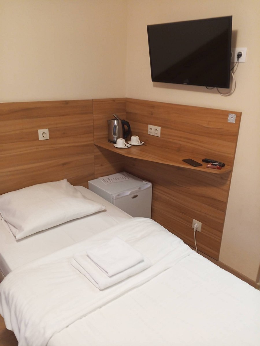В номерах и в корпусе вроде как свежий ремонт, но много чего уже не работает - в одном номере не работал вытяжной вентилятор, в обоих бежали унитазы. Сигнал вай-фай хороший, но сам интернет по ощущениям 512 килобайт. В номере есть холодильник, чайник, телевизор. Отдельный плюс - электрический полотенцесущитель, полезная вещь. -