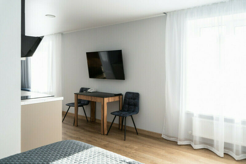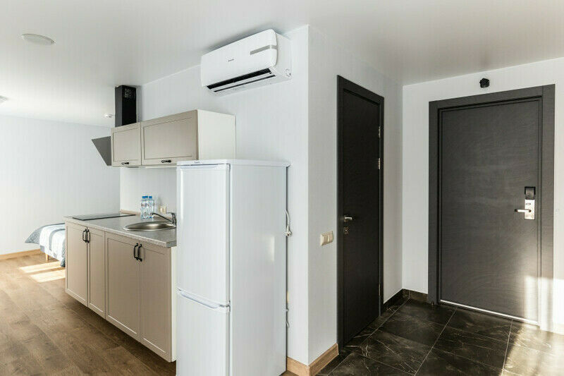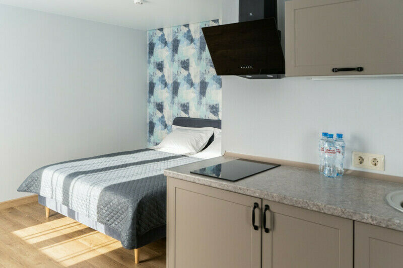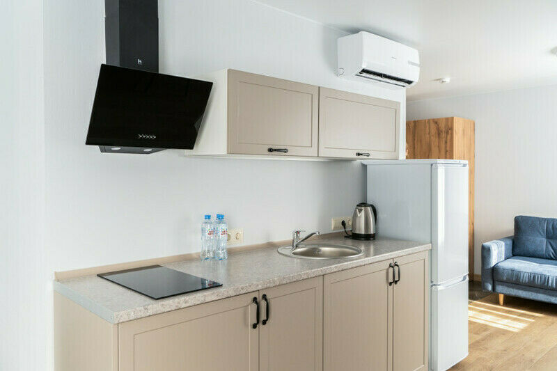 В апартаментах с комфортом разместится семья из четырех человек. В каждом номере данной категории установлен кухонный гарнитур с варочной панелью.