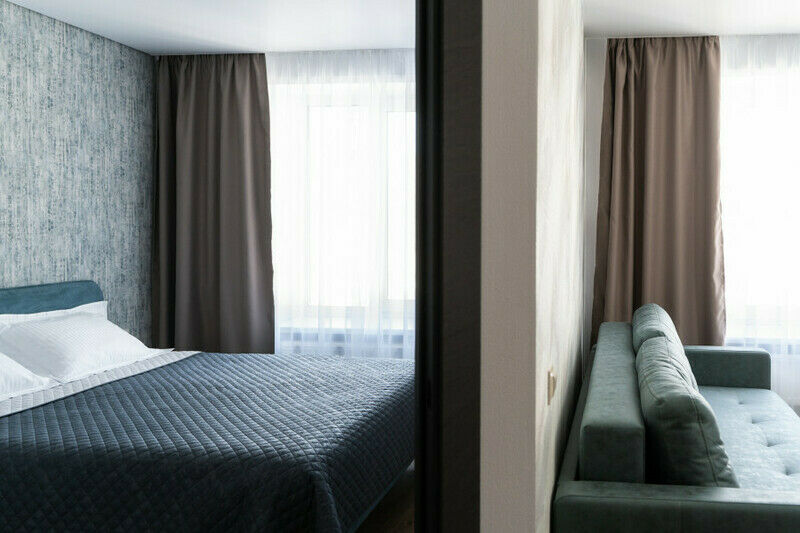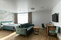 Насладитесь приятным отдыхом всей семьей в номерах категории «Апартаменты». В отдельной зоне большая 2-спальная кровать. Еще два дополнительных спальных места вы получаете при разложенном мягком диване.